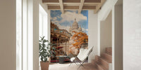 Transform your living spaces with this captivating **wallpaper for walls**, transporting you to the heart of Paris. The design features the iconic Sacré-Cœur Basilica alongside a beautifully detailed vintage carousel. The colour palette combines soft beige tones with pops of autumn orange, creating a warm and inviting ambience. Perfect for adding a touch of old-world charm, this wallpaper works wonderfully in dining rooms, bedrooms, and hallways. The intricate details of the carousel and the grandeur of the basilica create a sophisticated and timeless aesthetic. This wallpaper adds depth and visual interest, making your walls a focal point.