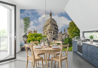 Transform your living spaces with the timeless elegance of this captivating basilica design. This striking wallpaper for walls features the Sacré-Cœur against a backdrop of a gentle blue sky, infusing any room with a sense of grandeur. Its intricate details and soft colour palette of stone, green, and sky blue work beautifully in a living room, hallway, or dining area. This wallpaper introduces architectural interest, enhancing the walls with a classic touch. The design brings a blend of history and tranquility into your home.