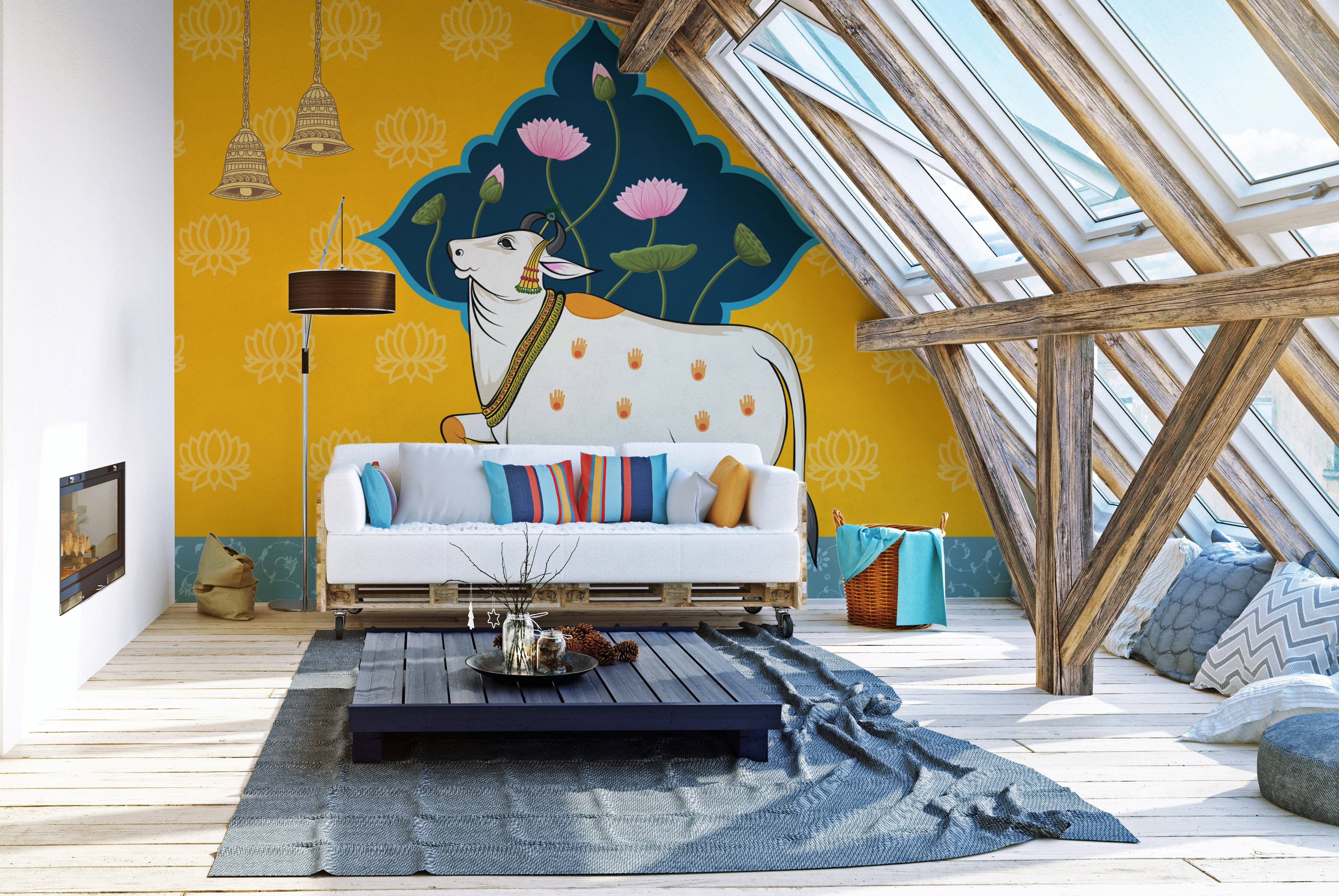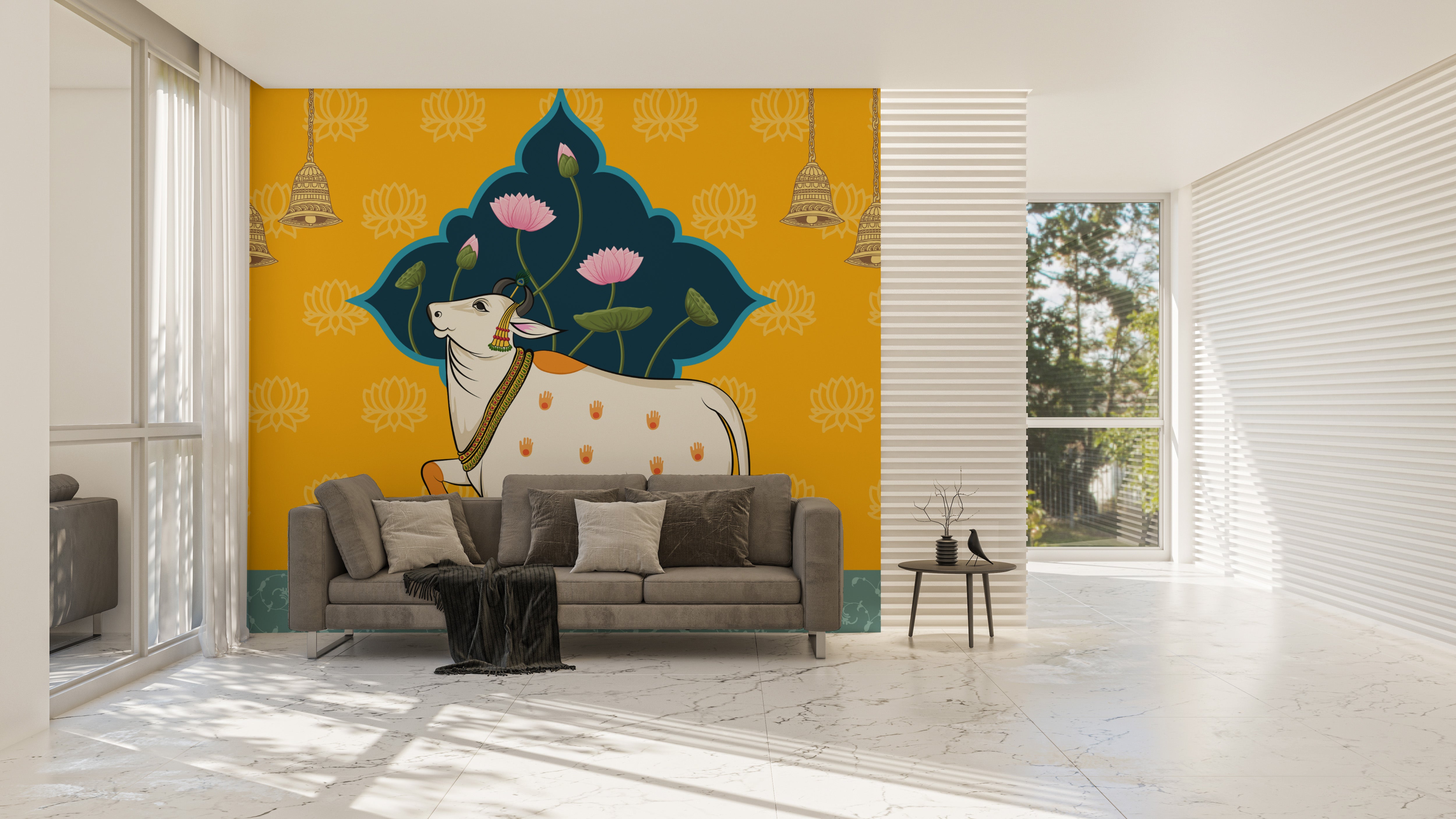 Pichwai Sacred Cows Mango Tree Mural feature wall
