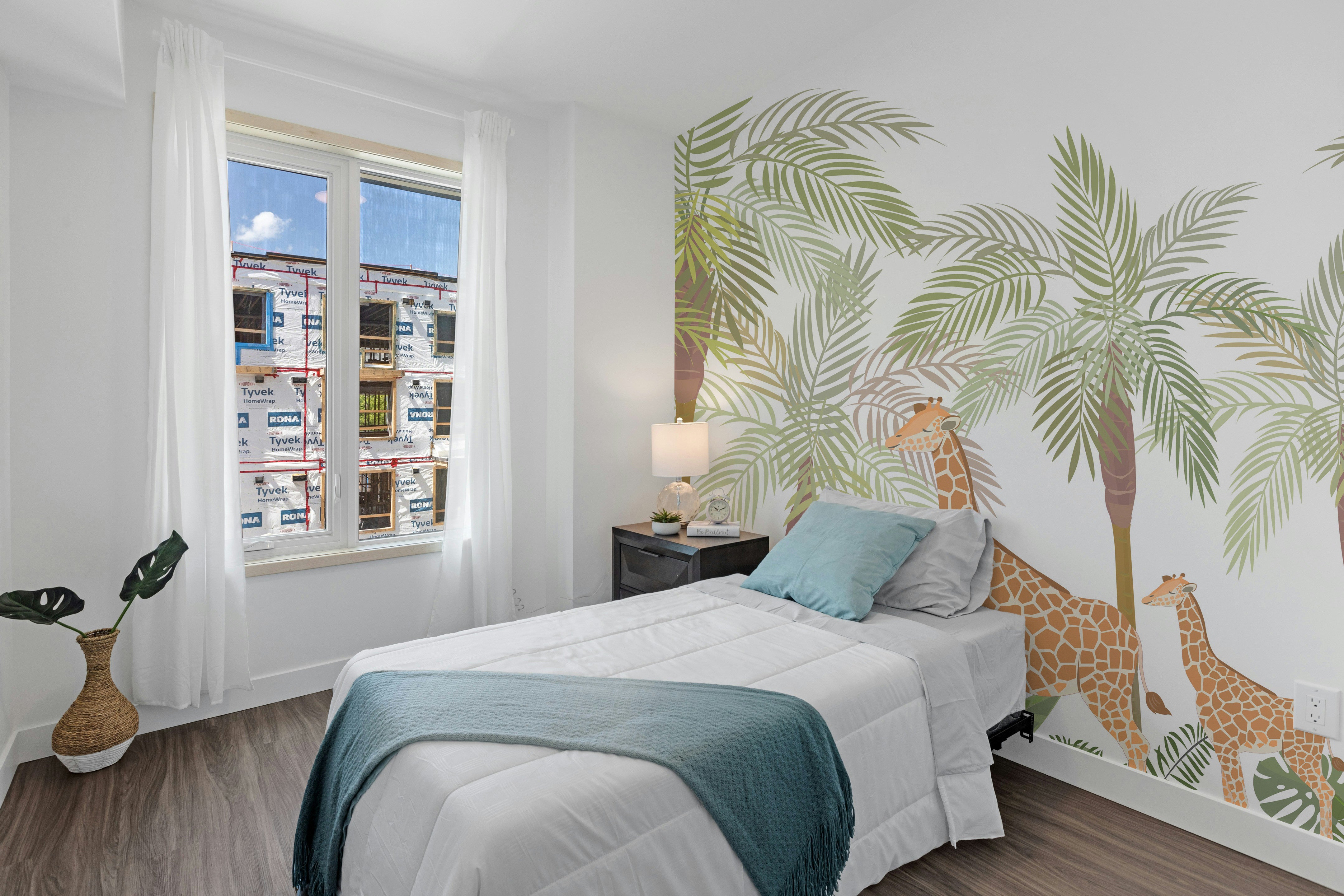 Tropical jungle mural featuring wild animals