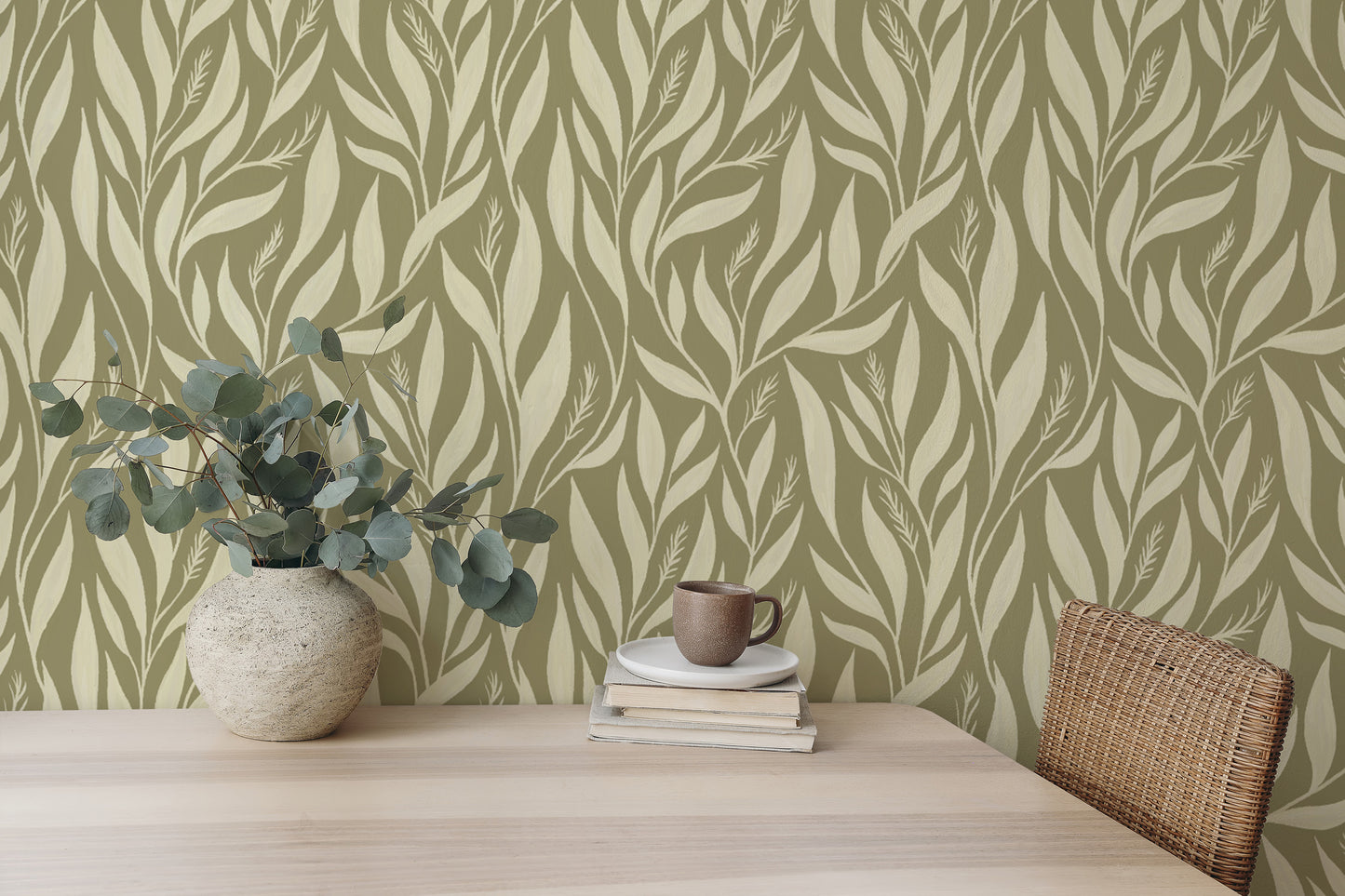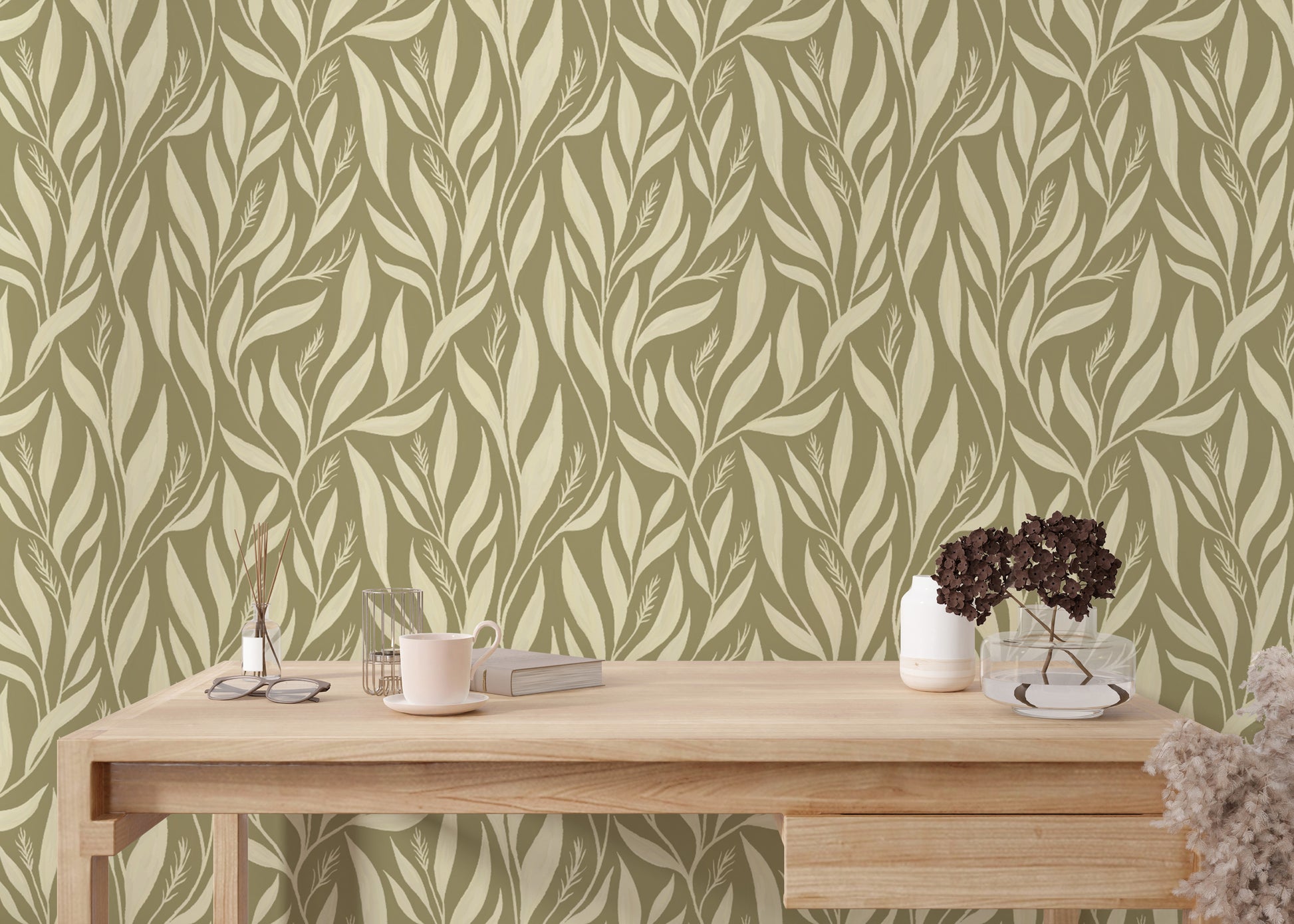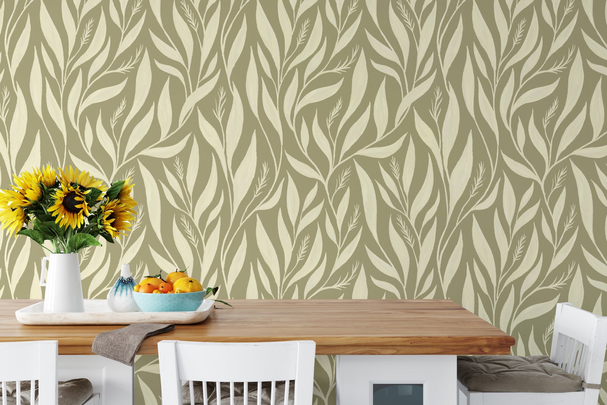 Sage green leavescapes wallpaper showcases a soft, highly intricate pattern of leaves that brings refinement and taste to wall design. The sage green color evokes emotions of calm and natural feelings, making it perfect for numerous types of rooms. From cozy living rooms to serene bedrooms, this wallpaper will fit whatever interior style one may have. The repeating leavesdesign ensures that your walls are covered in an even, aesthetically pleasing pattern, drawing the eye without overwhelming the senses. Invest in Leaves wallpaper and bring a touch of nature indoors without compromising on timeless elegance.
