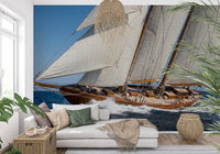 Invite the tranquility of the open sea into your home with this captivating wallpaper for walls. Featuring a classic sailing yacht slicing through azure waters, this design evokes a sense of freedom and adventure. The interplay of the rich, warm tones of the wooden hull against the cool, crisp whites of the sails creates a balanced visual harmony. Ideal for a study, living room, or nautical-themed bedroom, this maritime scene adds a touch of timeless elegance and expansive energy. This wallpaper transforms any space into a serene escape.