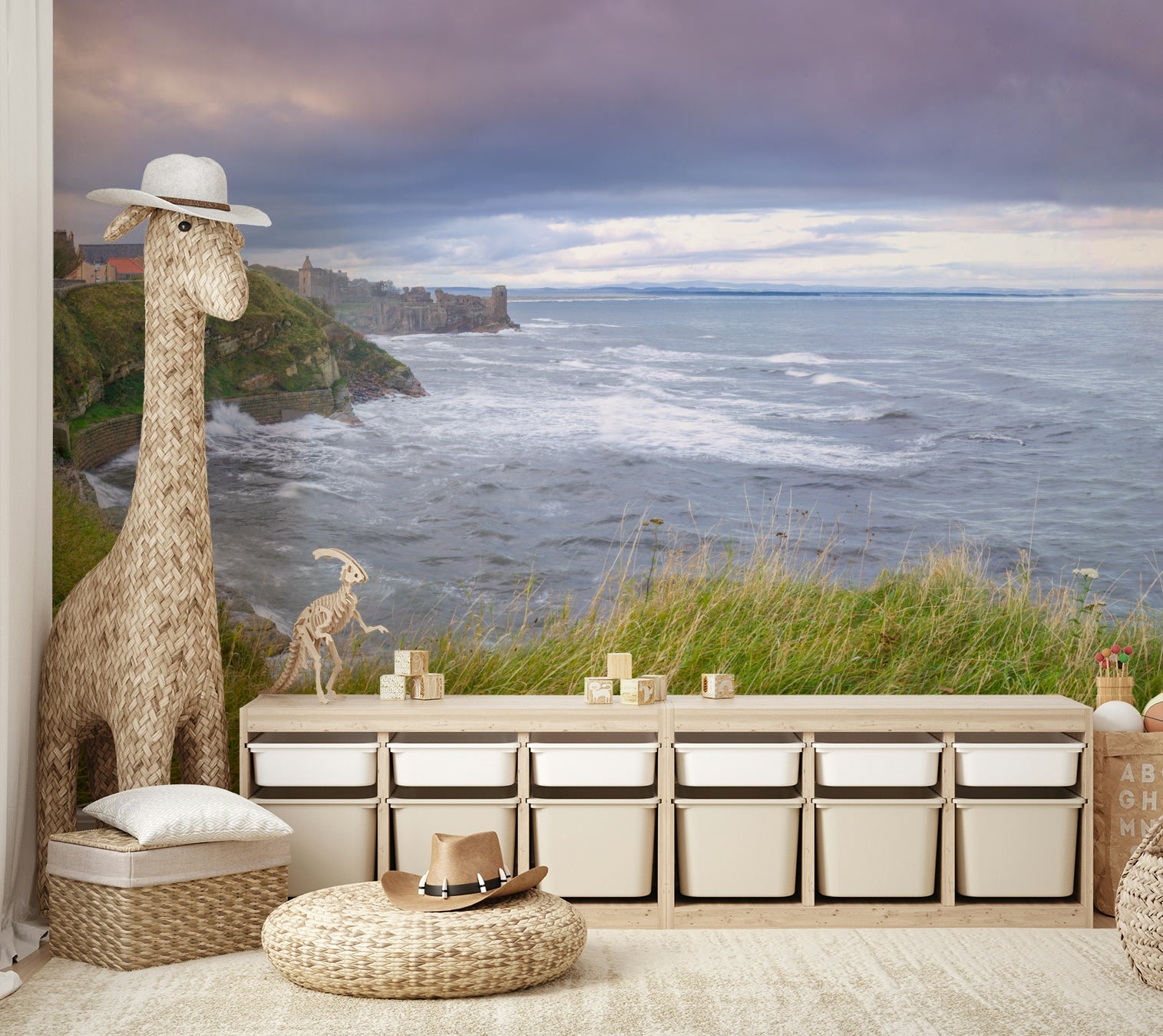 Our Saint Andrews - Scotland Wall Mural gives your home a feeling of classic elegance and historical charm. This wall mural features a panoramic view of the St Andrews coastline in Scotland, with its rugged shoreline and ancient ruins. The serene, natural setting and soft colors are a perfect choice for creating a tranquil and inviting backdrop in a living room, dining room, or study. This high-quality wallpaper for walls is durable and easy to install, making it a simple way to get a classic, high-end look with a touch of timeless style.