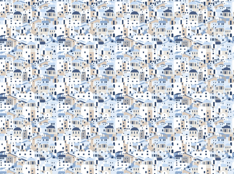 Santorini-inspired repeat pattern wallpaper design