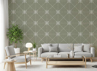 Introduce a touch of serene elegance to your living space with 'Sashiko Hana-Goshi'. Inspired by the traditional Japanese embroidery technique, this pattern features delicate, stylized flower motifs intricately woven into a subtle latticed grid. The soft sage background provides a calming backdrop, allowing the off-white, stitched-like details to gently come to life. The design evokes a sense of handcrafted beauty and mindful simplicity, perfect for creating a tranquil and inviting atmosphere in any room. Add a unique touch of artistry and transform your walls into a haven of understated charm with this piece, where cultural heritage meets contemporary style.