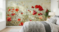 Bring the beauty of a sun-drenched field into your home with this captivating wallpaper. The striking red poppies offer a lively contrast to the neutral tones of the meadow, creating a warm, inviting atmosphere. This wallpaper for walls enhances any space, from a cosy bedroom to a welcoming hallway. Its design effortlessly blends into farmhouse, cottagecore, or even minimalist decors.