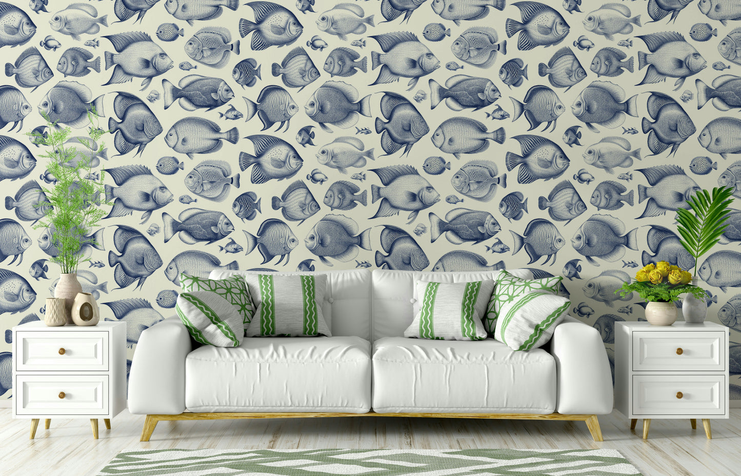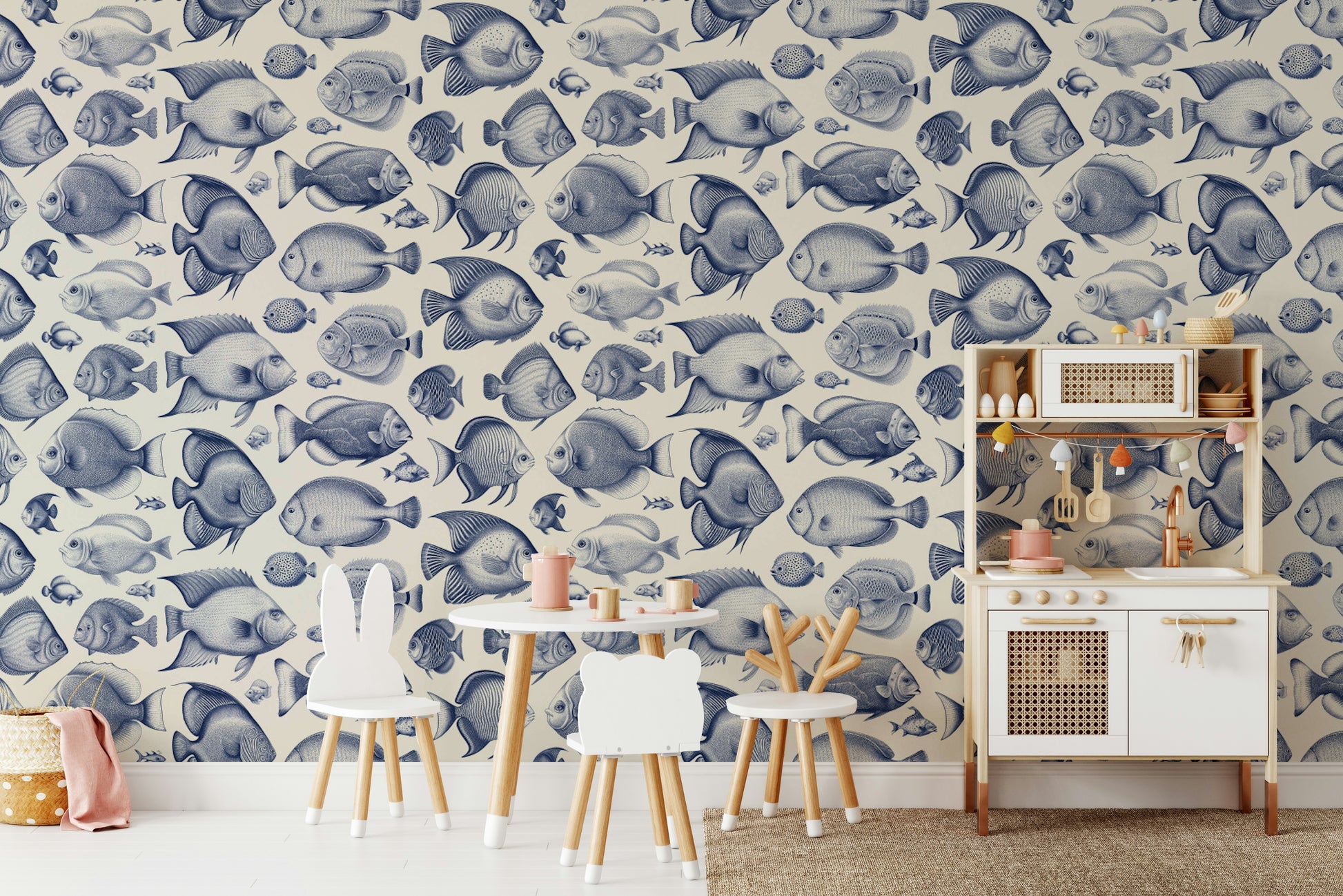 School of Uncanny Fish - Delft Blue Wallpaper⁠