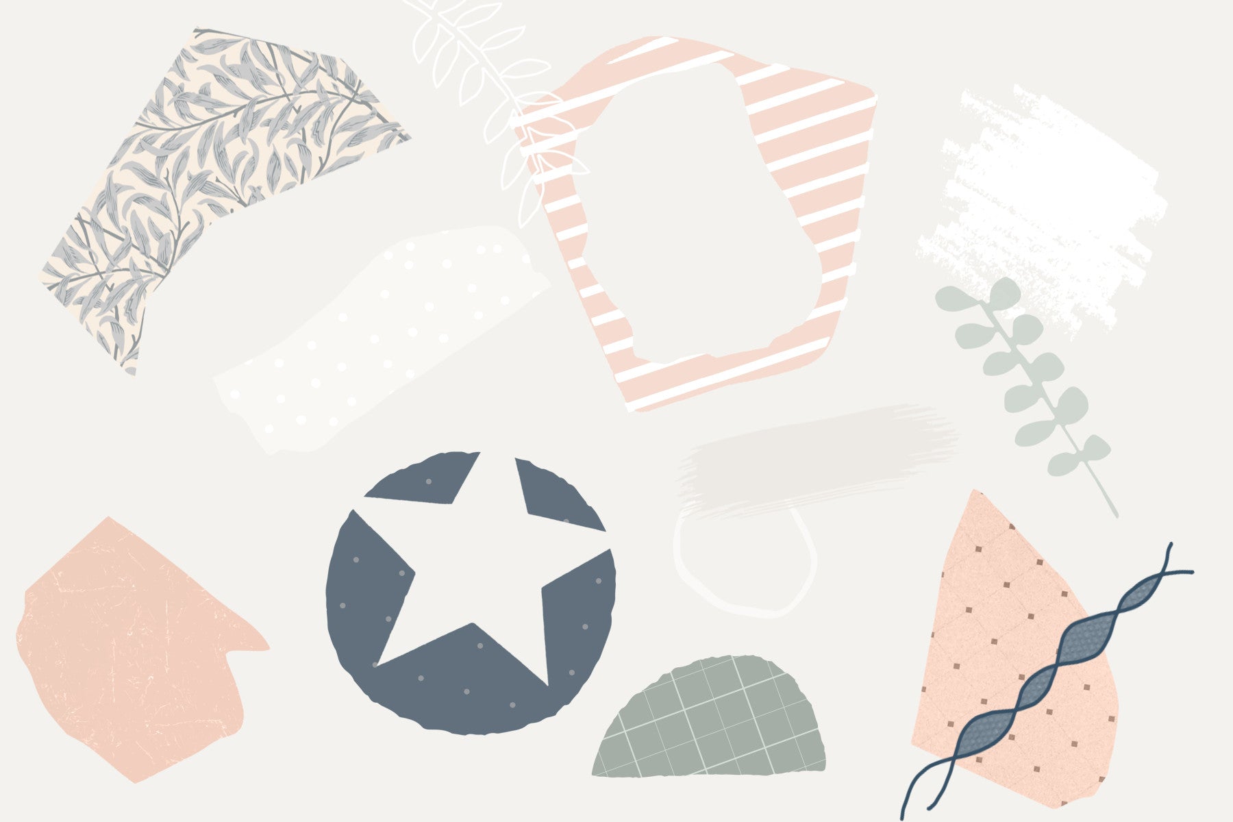 Embrace modern whimsy with this unique, collage-style wallpaper. Shapes, stripes, and floral elements combine in a fresh and understated design. Soft hues of peach, beige, and gray offer a soothing palette. This wallpaper for walls works beautifully in a nursery or bedroom, bringing a light, artistic touch. The artful patterns blend seamlessly into interiors, adding texture and character to any space, creating an inviting and gentle environment.