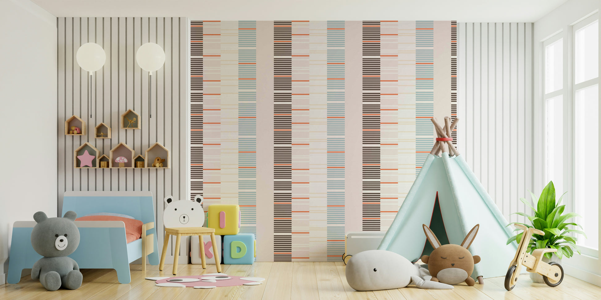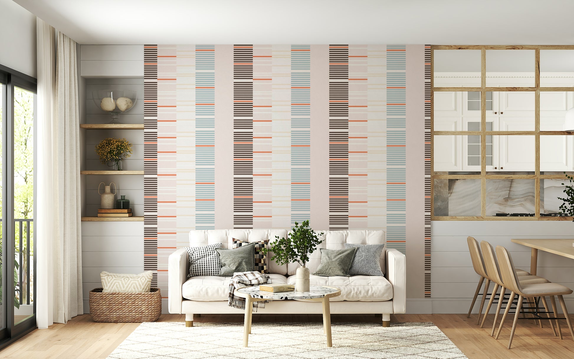 Sea Drift is a minimal, rhythmic design inspired by layers of tide marks and driftwood textures along the shoreline. Alternating slim bands in warm coral, sandy beige, and deep charcoal create a contemporary linear flow that feels both modern and organic. The balanced simplicity makes it ideal for wallpapers — bringing a subtle coastal sophistication to any wall.