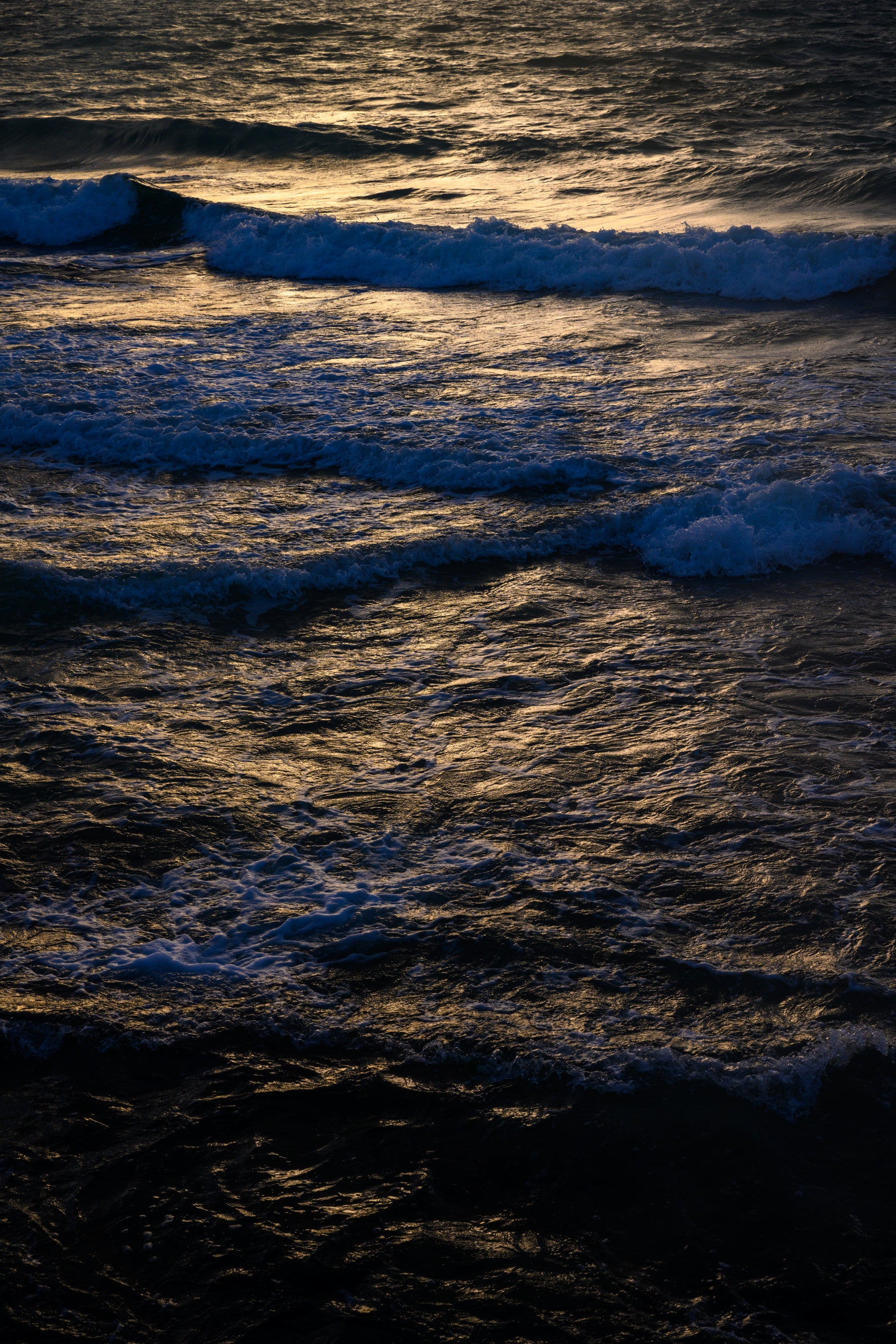 Immerse yourself in the tranquil depths of 'Seaside #39', a captivating wallpaper that evokes the serene power of the ocean. Witness the interplay of light and shadow as the sun casts a golden glow upon the rhythmic waves. The image captures a moment of quiet drama, with cresting waves building and tumbling, the foamy water forming a textured canvas. The dark lower reaches of the image contrast beautifully with the shimmering surface, creating a sense of depth and mystery. 'Seaside #39' brings the calming essence of the sea into your digital space, ideal for those seeking a sophisticated and evocative background. Transform your screen into a window to the boundless ocean, offering a soothing and visually stunning experience every time you look.