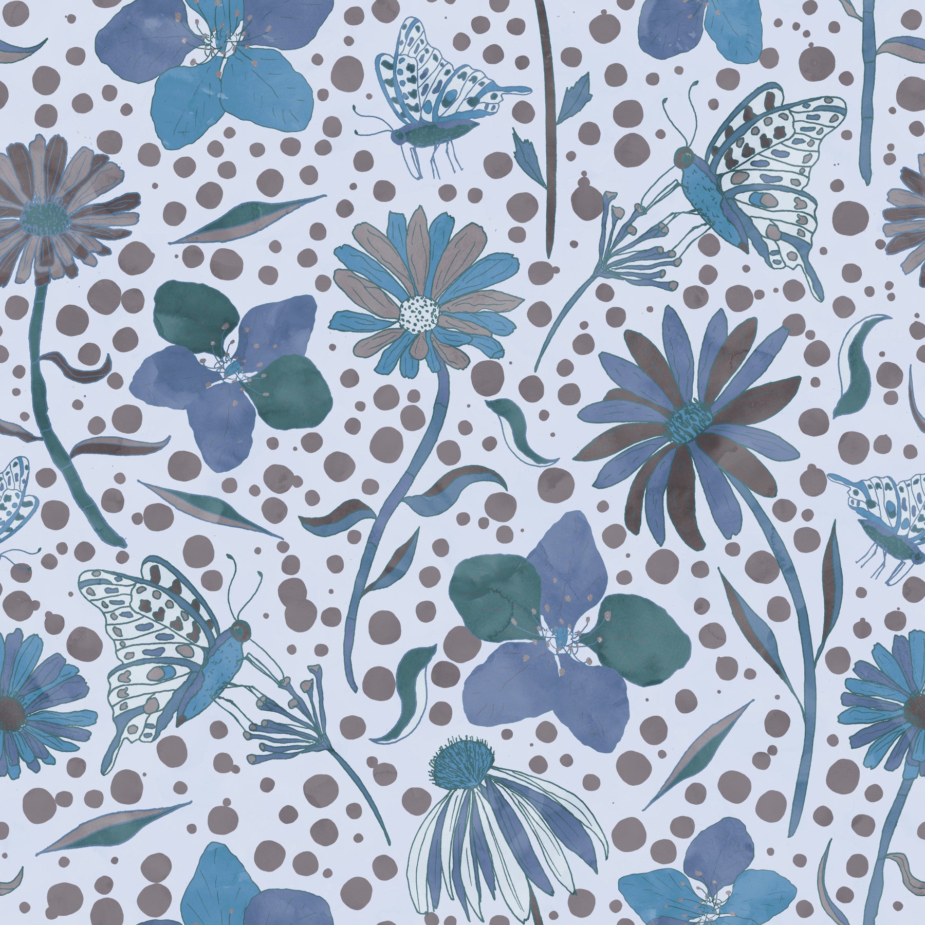 Step into a world of whimsical beauty with our Secret Butterfly Garden Blue wallpaper. This beautiful mural wallpaper features a delicate, hand-painted design of butterflies and wildflowers on a calming blue background. The soft colors and detailed illustrations create a peaceful and romantic atmosphere. It's the perfect wallpaper for walls in a bedroom, nursery, or sunroom, offering a touch of nature's simple elegance and charm.