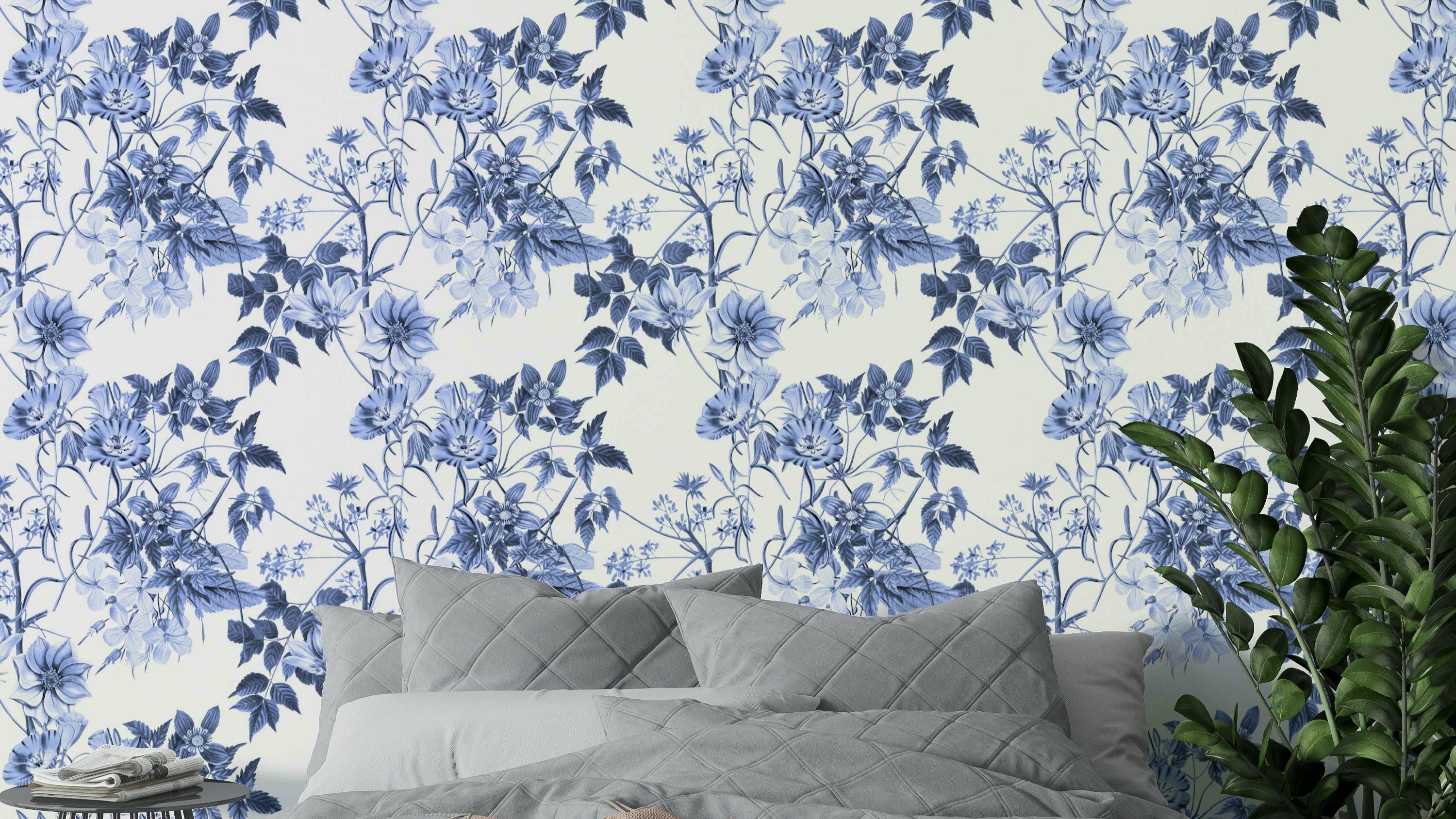 Serene Blue Botanicals Wallpaper⁠