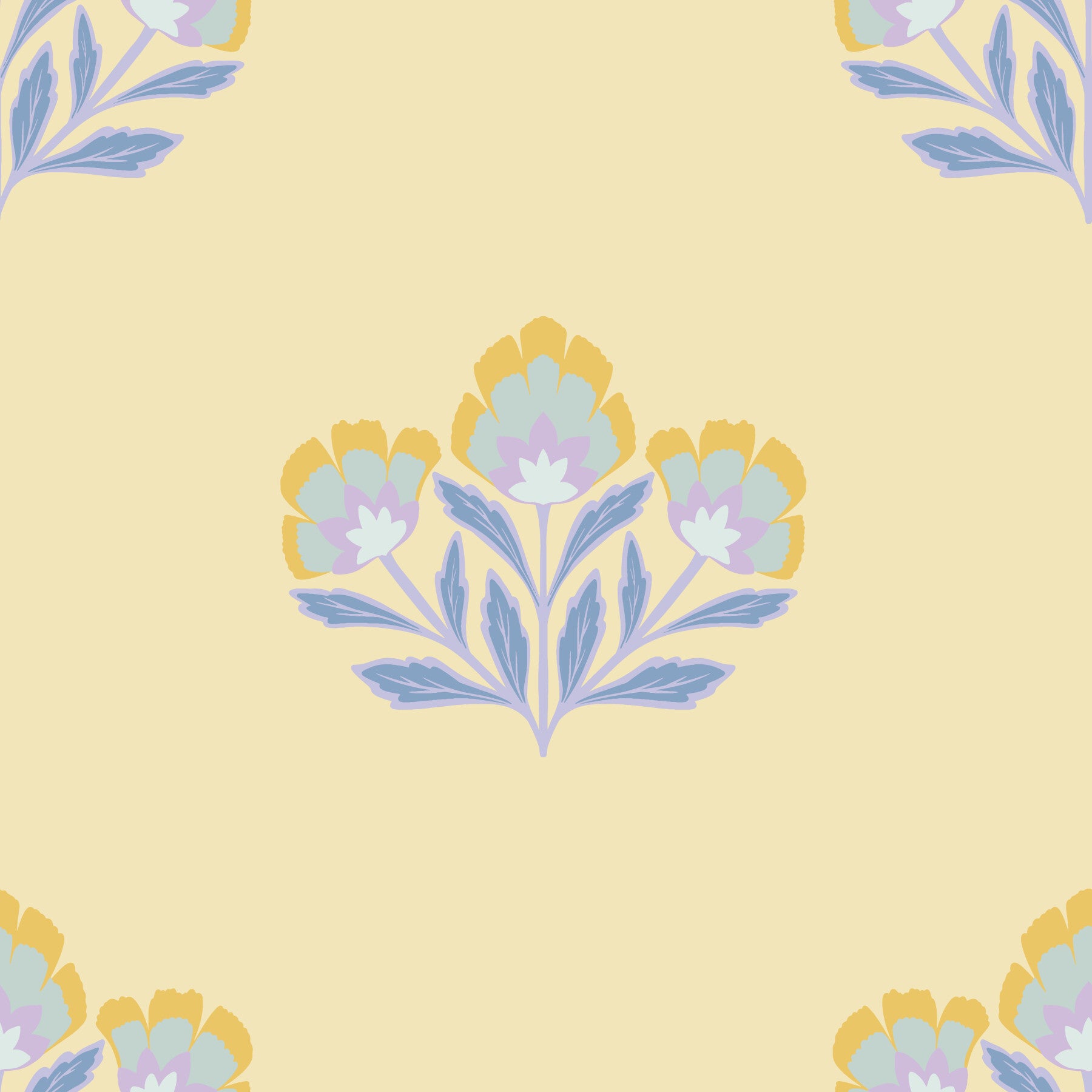 Blissful Serene Flora wall mural, restful pale yellow backdrop design.