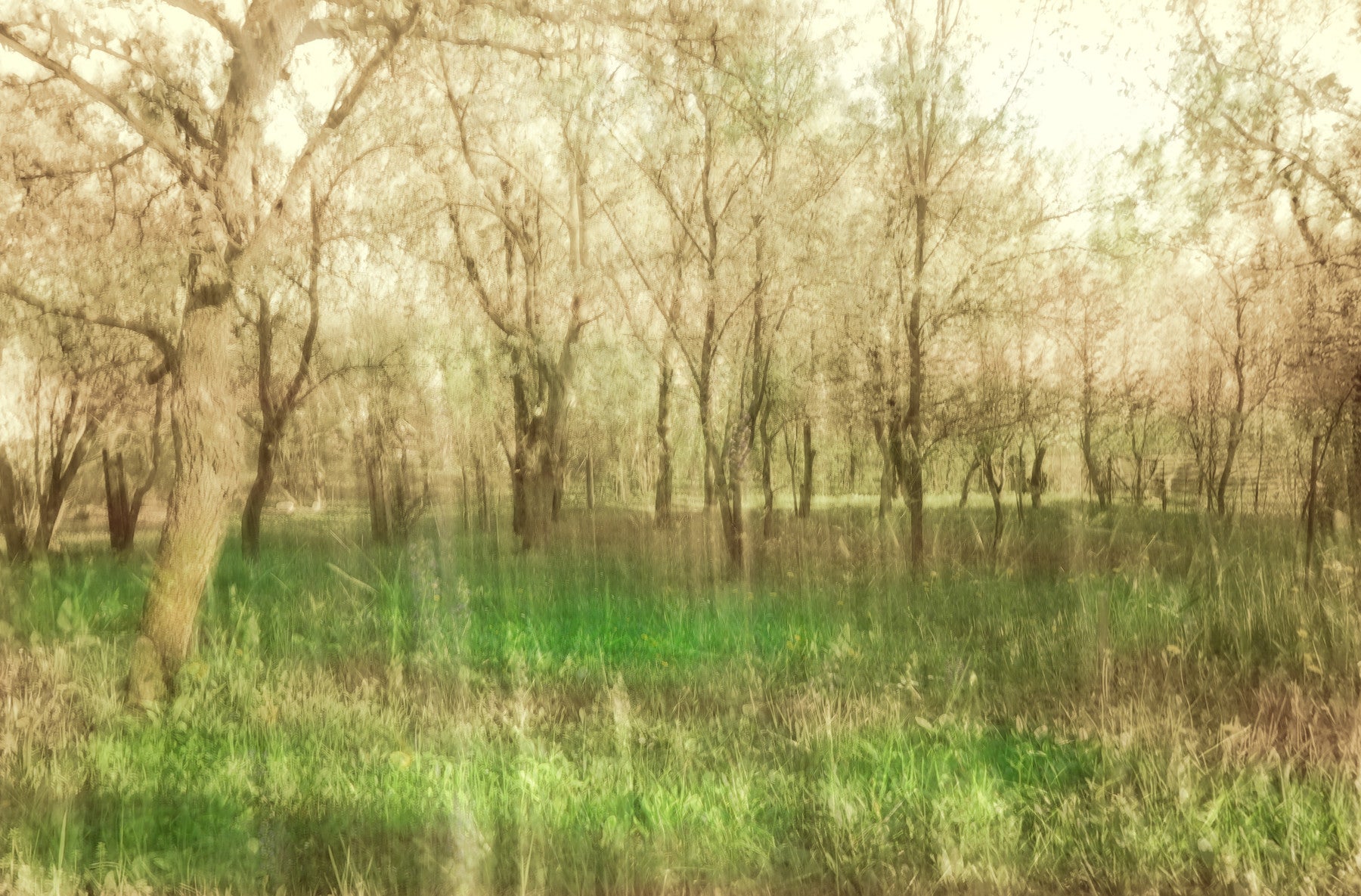 This art piece presents a serene forest landscape, where gentle light filters through the trees, revealing a tranquil scene. The soft hues of green and earthy tones invite a sense of calm, making it a perfect addition to any space seeking a touch of nature.