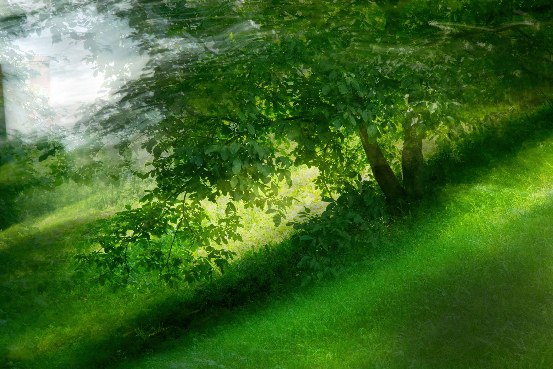 Serene Green Landscape Photography - Tranquil Tree and Lush Grass Scene Wall Mural
