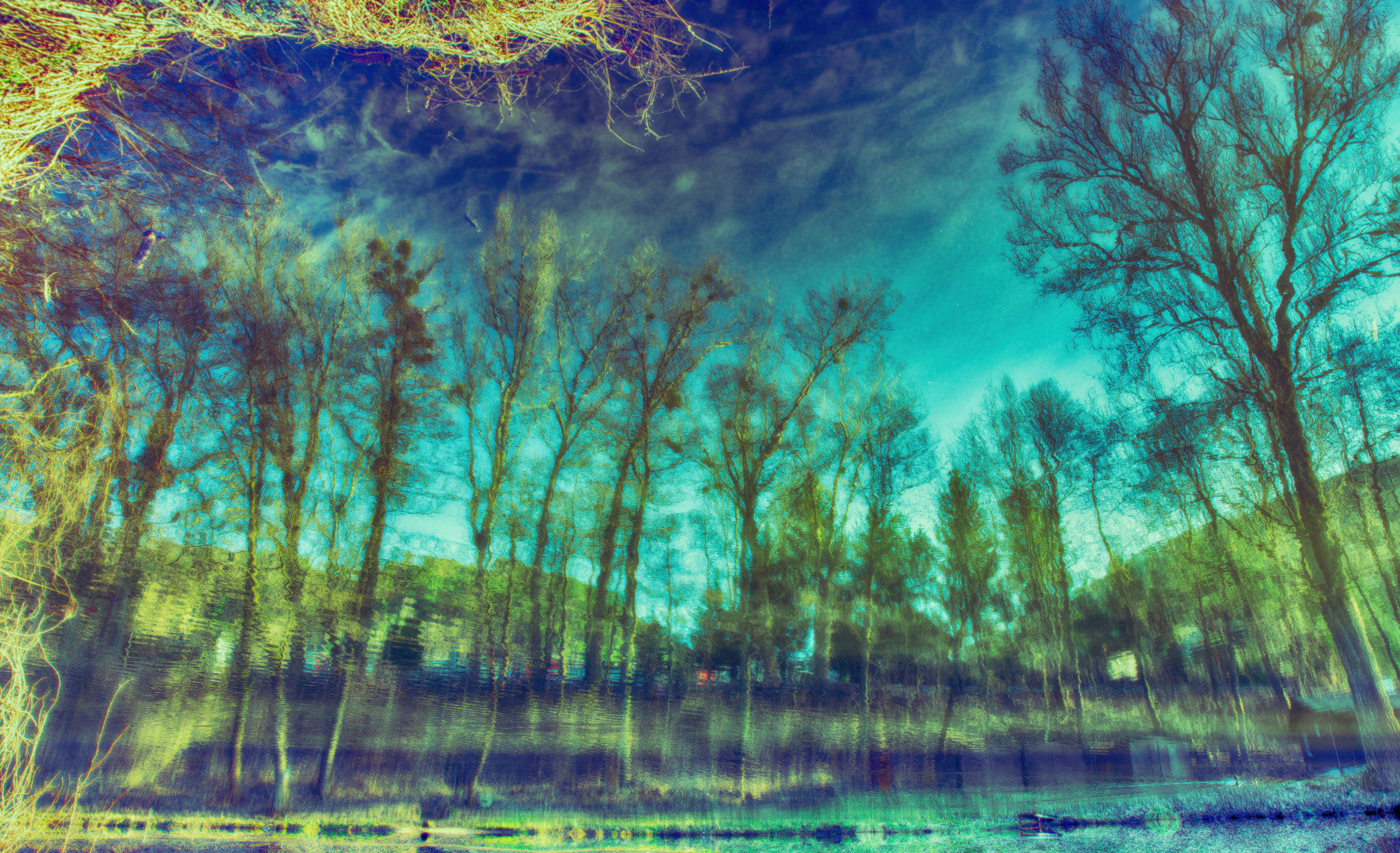 This striking artwork presents a unique perspective of trees mirrored in tranquil water, showcasing a blend of colours that evoke a sense of calm. The interplay of light and shadow reveals the beauty of nature in an abstract form, making it a captivating addition to any space. Perfect for those who appreciate the serenity of the outdoors, this art piece invites contemplation and enhances your environment with its soothing presence.