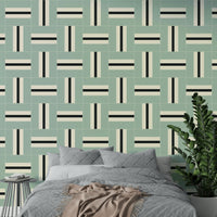 This wallpaper design features a calming palette of sage green, off-white, and black, arranged in a simple yet elegant striped pattern. The subtle interplay of colors and the clean lines create a sense of tranquility and sophistication, making it perfect for any room in your home that needs a touch of understated style. The repeating pattern ensures a cohesive and visually appealing look. The minimalist aesthetic lends itself well to both modern and traditional interiors, offering a versatile backdrop for your personal style to shine. It's a perfect choice for those who appreciate clean lines and a serene atmosphere.