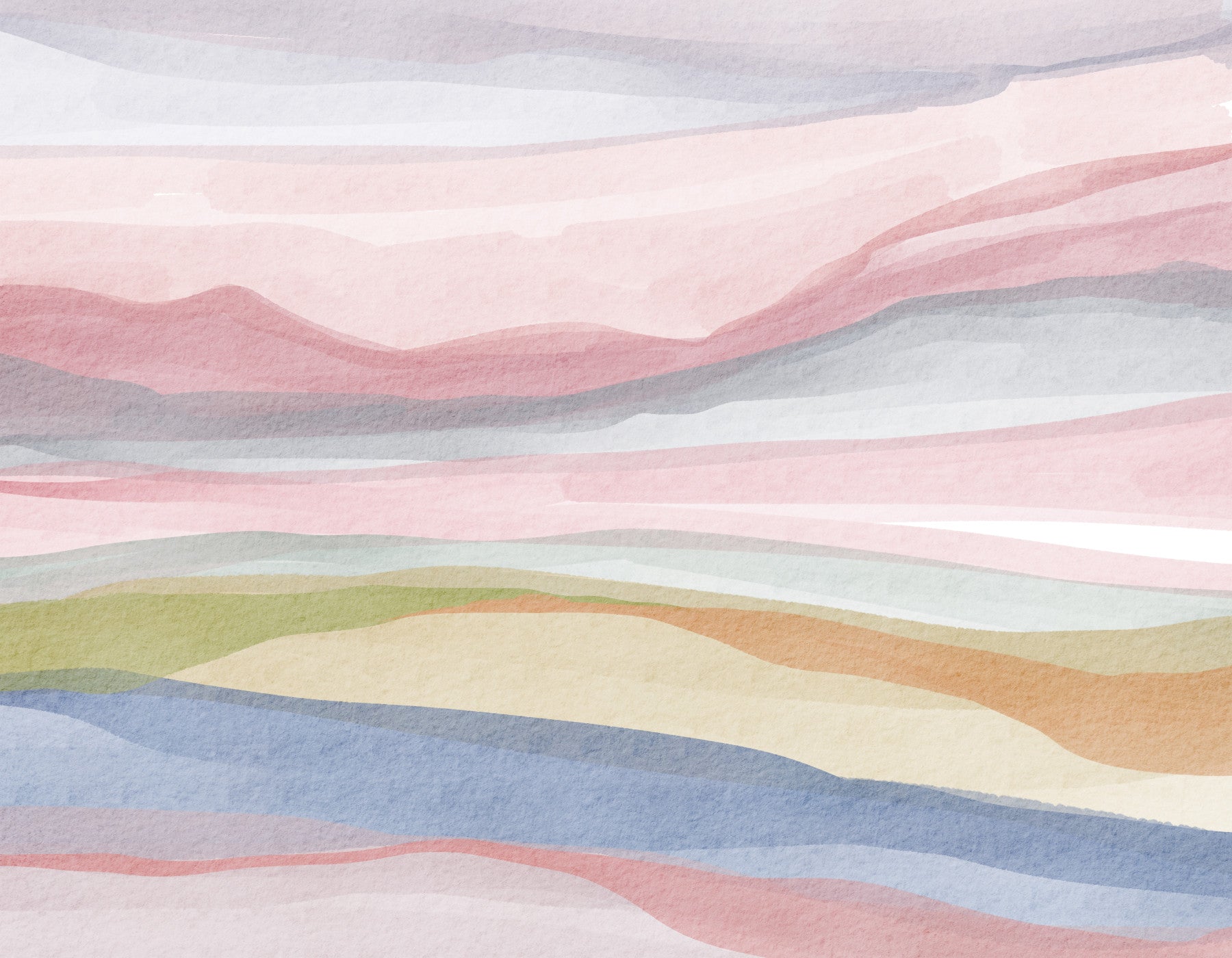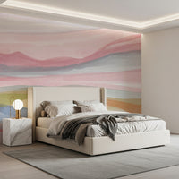 Introduce tranquility to your home with this watercolour design for walls. This wallpaper features soft brushstrokes of blush, blue, green and beige which create a peaceful, horizon-like effect. This mural brings a sense of calm and open space, without overwhelming the room.