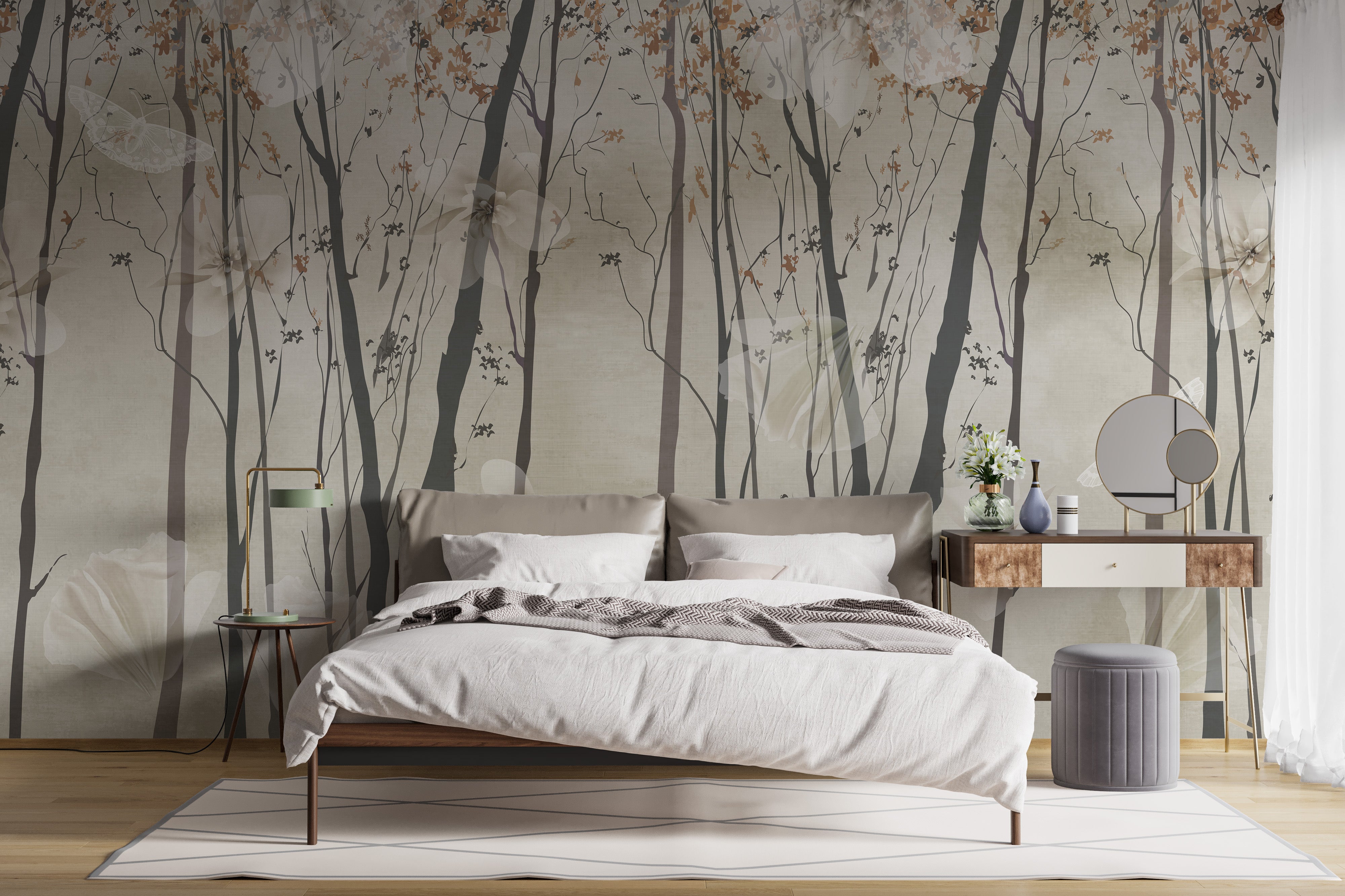 Serene Beige Woods Wallpaper Mural - Giffywalls