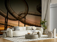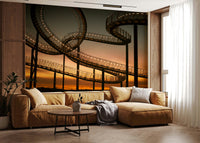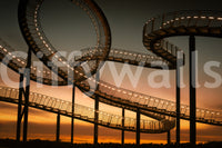 Ascend into a dreamlike vista with "Sky Steps", a wallpaper that transforms your screen into a gateway to the heavens. This mesmerising image captures a fantastical stairway stretching towards a fiery sunset. Illuminated by rows of warm, inviting lights, the metallic structure weaves and loops, creating an illusion of infinite ascent. The evocative blend of industrial design and natural beauty evokes a sense of wonder and limitless possibility. Let your imagination soar as you contemplate the journey ahead, with each step a path to new heights. Ideal for those who seek inspiration and a touch of surreal artistry in their digital space, "Sky Steps" offers a calming yet captivating backdrop. Add a layer of depth and intrigue to your device with this stunning fusion of architecture and twilight's embrace.