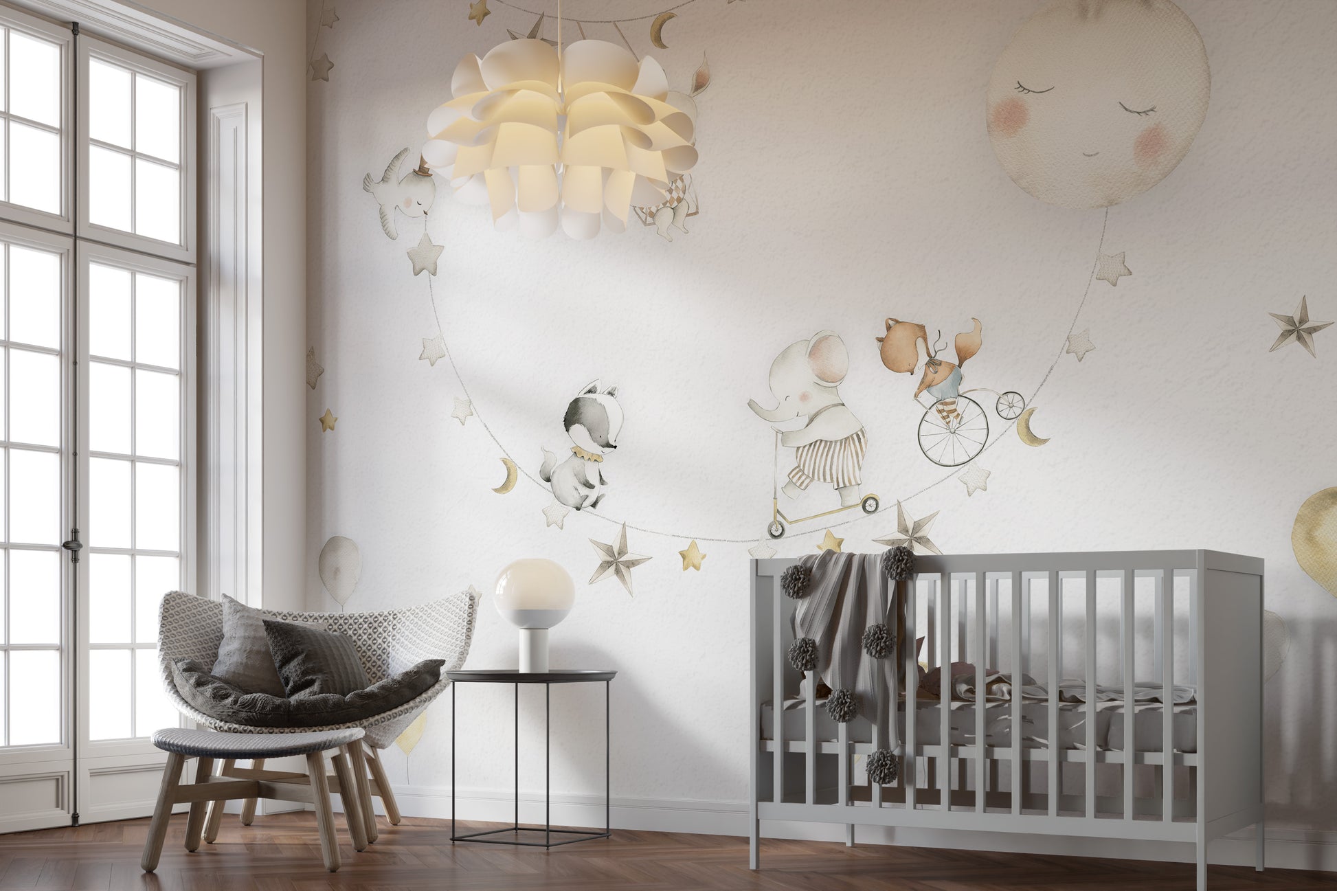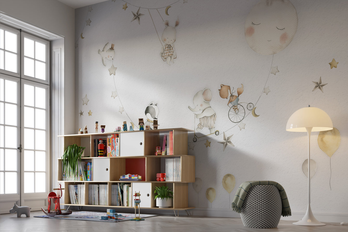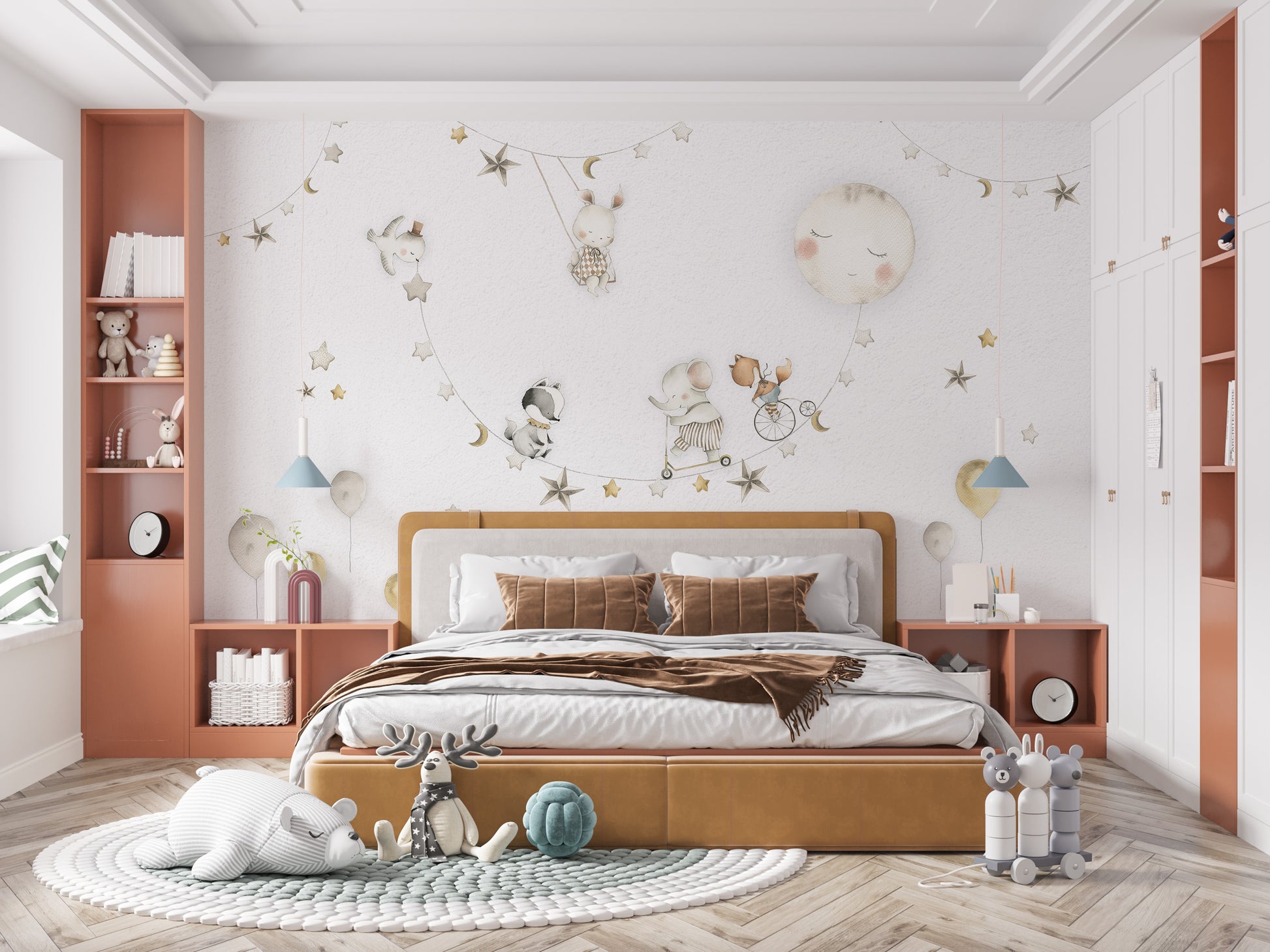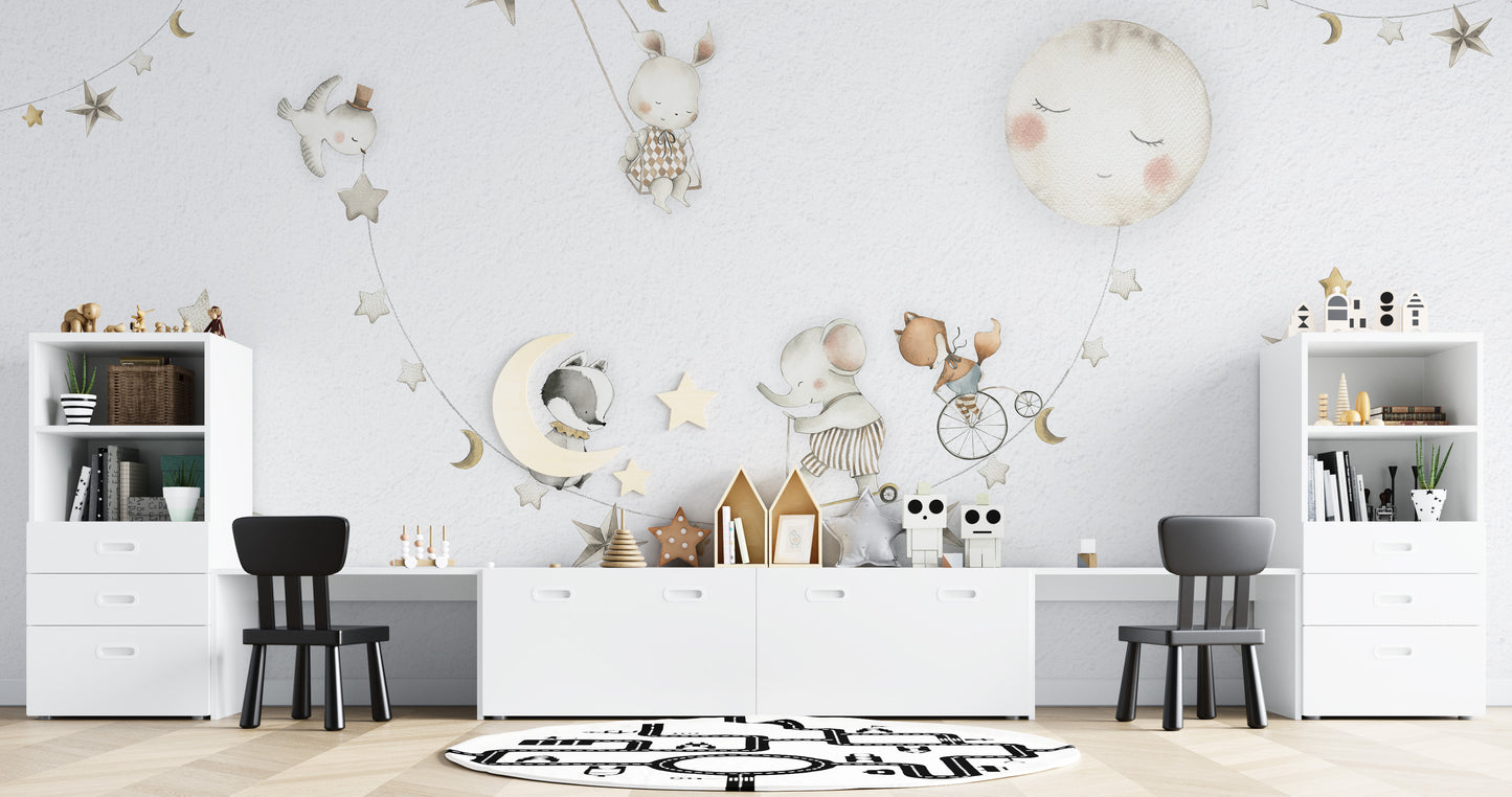 Calm and cozy moon wallpaper for playrooms