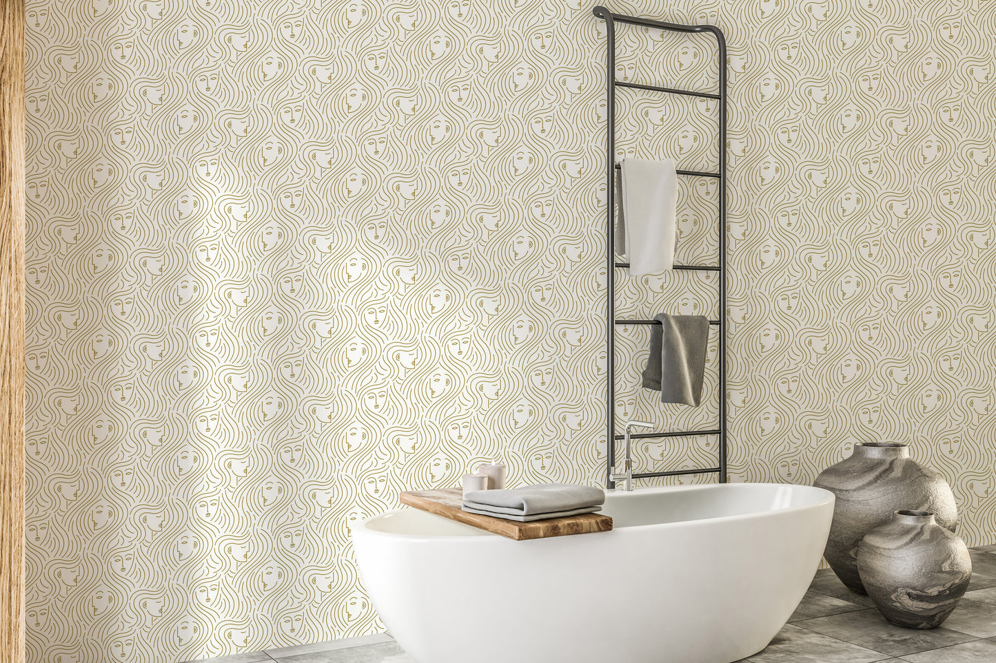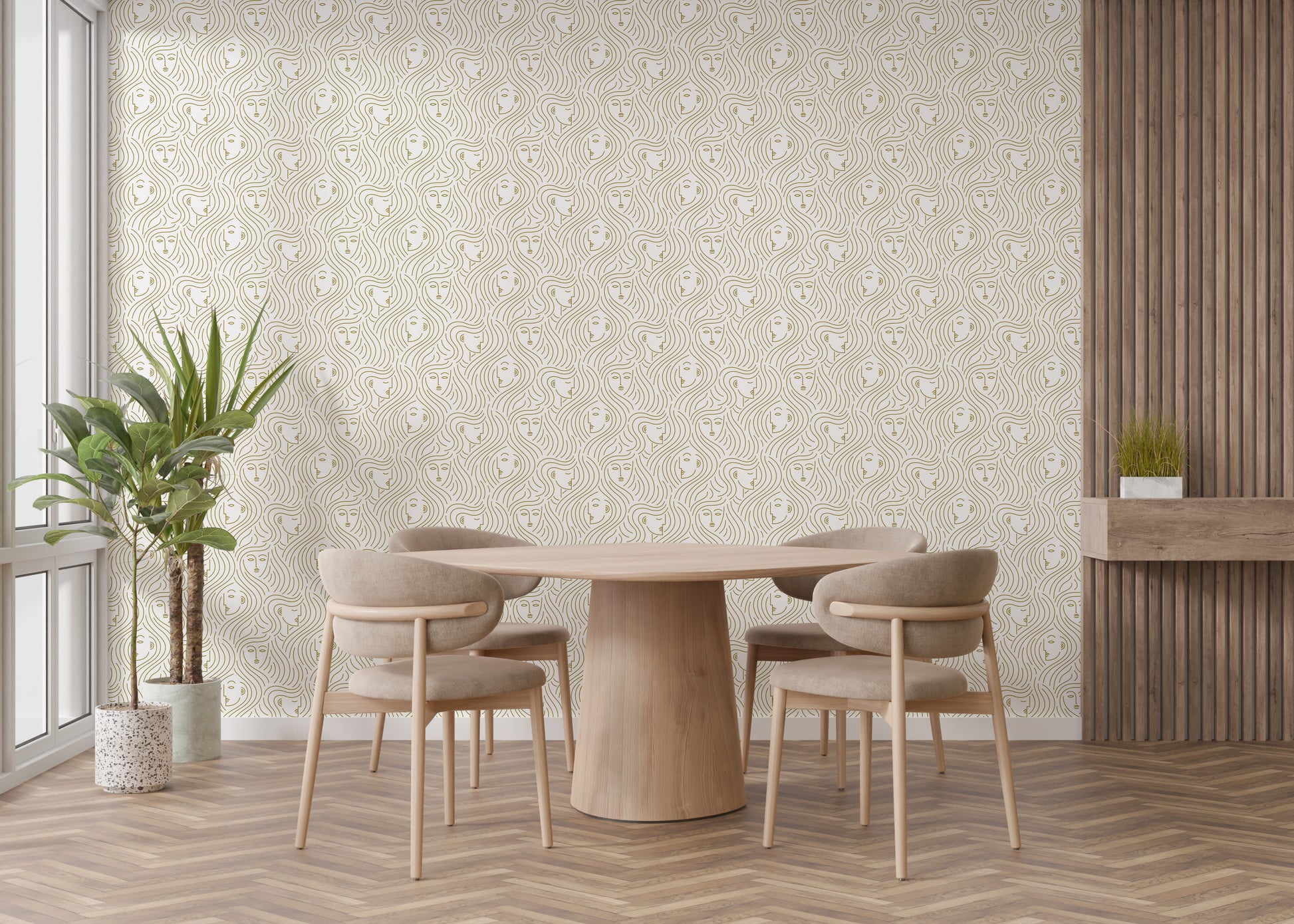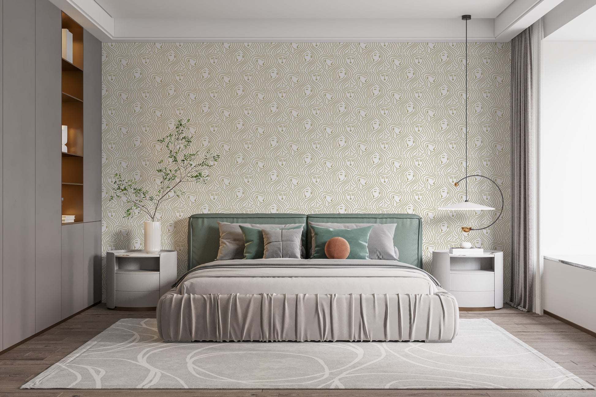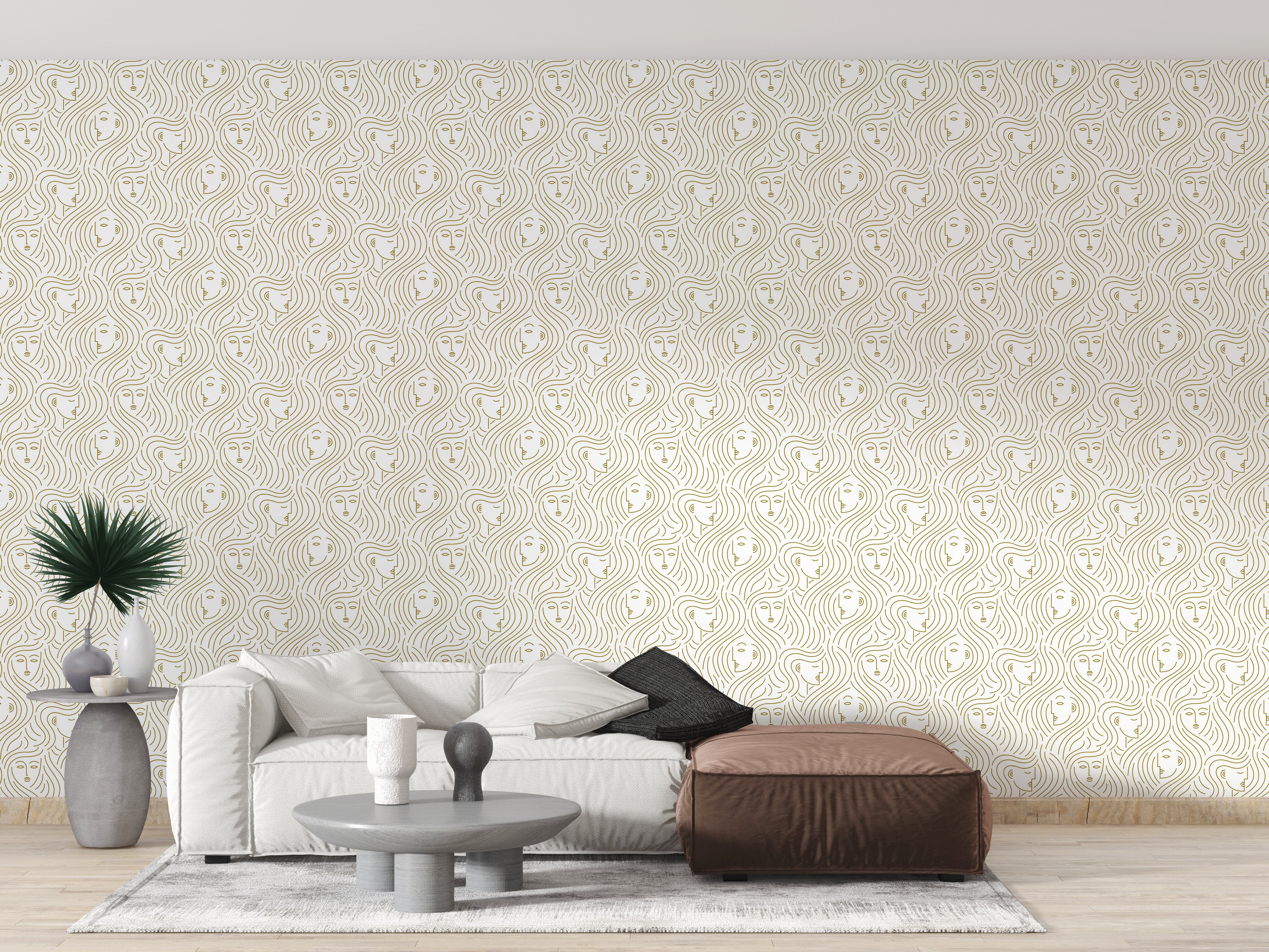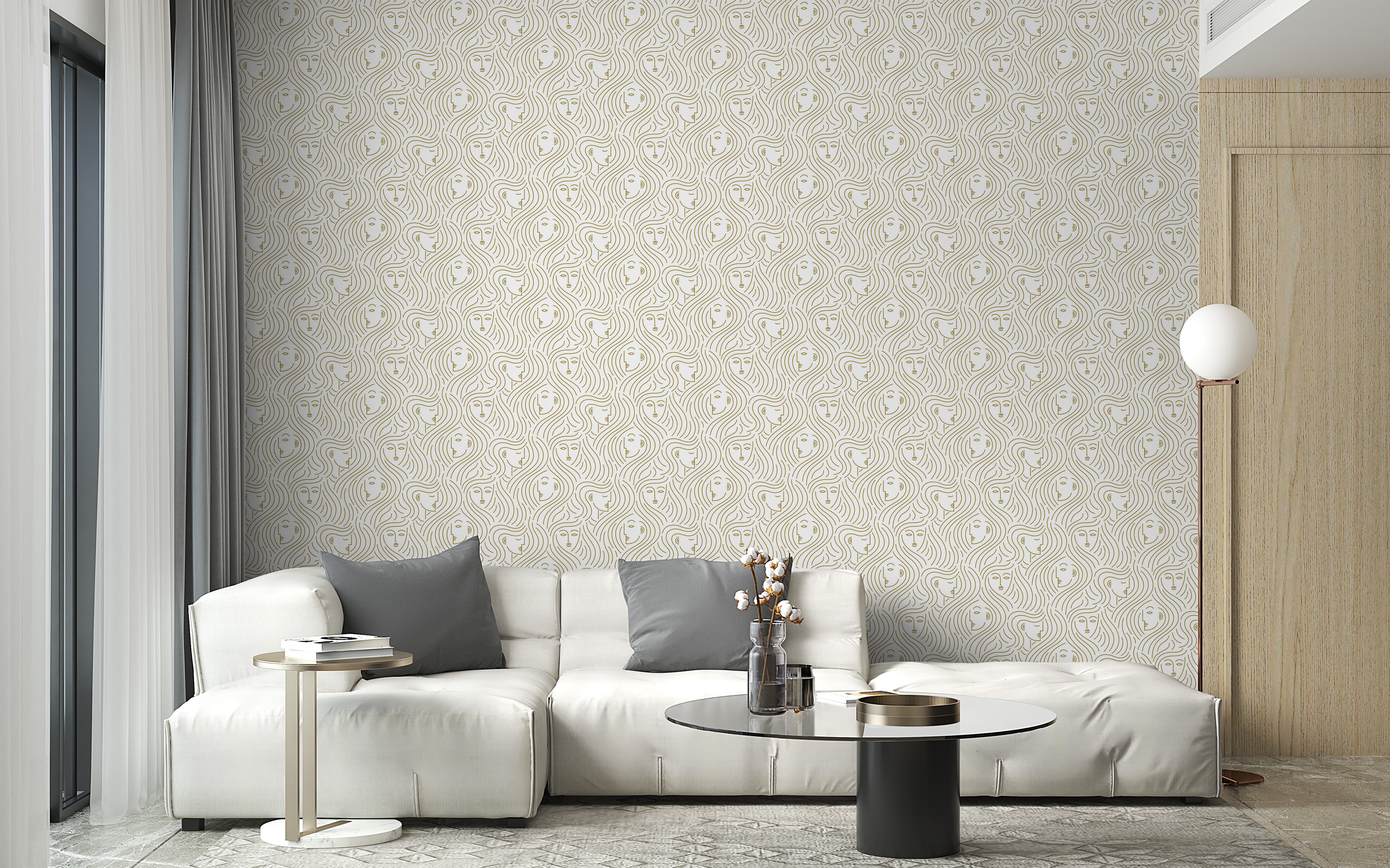 The pattern of woman heads with hair mural wallpaper is a mesmerizing and artistic addition to bedroom decor. It features a continuous, interconnected design of female faces with flowing hair, creating a tapestry of serene expressions. This bedroom wallpaper exudes a subtle yet captivating charm, drawing the eye with its intricate linework and soothing palette. It's perfect for those who appreciate modern art and elegant design. As a backdrop, this room wallpaper can make a bedroom feel like a personal gallery, with each glance offering a new perspective on the pattern's complexity. It's a choice that speaks to a love of unique, thoughtful design elements in personal spaces.