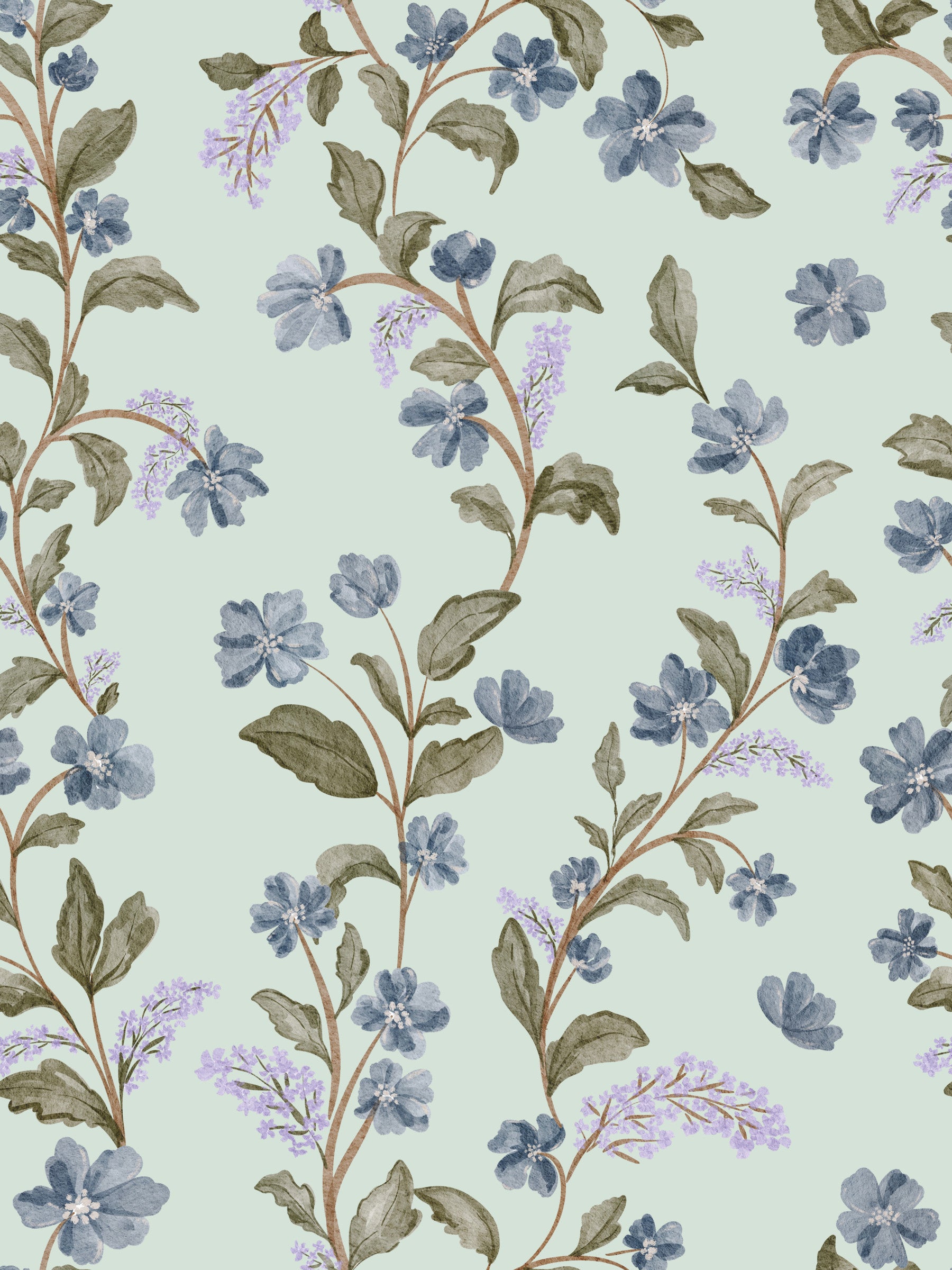 Beautiful Soft Blue Floral Pattern wallcovering vintage aesthetic pattern piece.