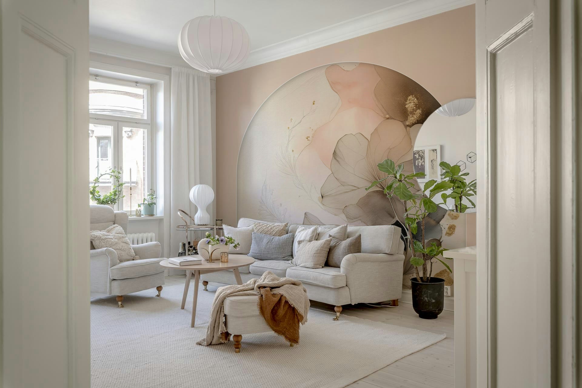 Wall mural with delicate floral details evoking a sense of calm, balance, and timeless beauty.