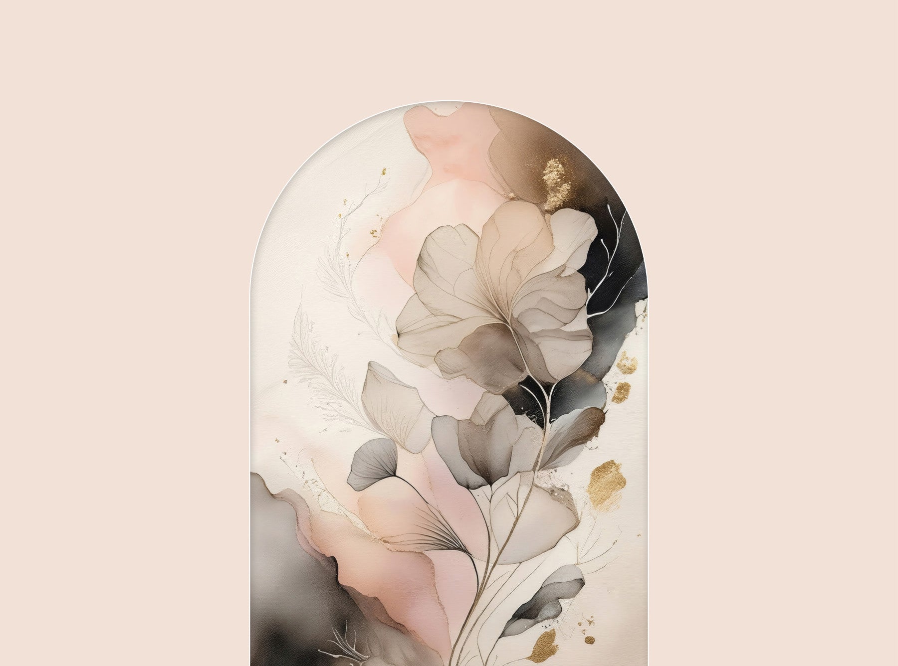 Floral-inspired wall mural in soothing shades of pink and beige for a serene, modern décor.
