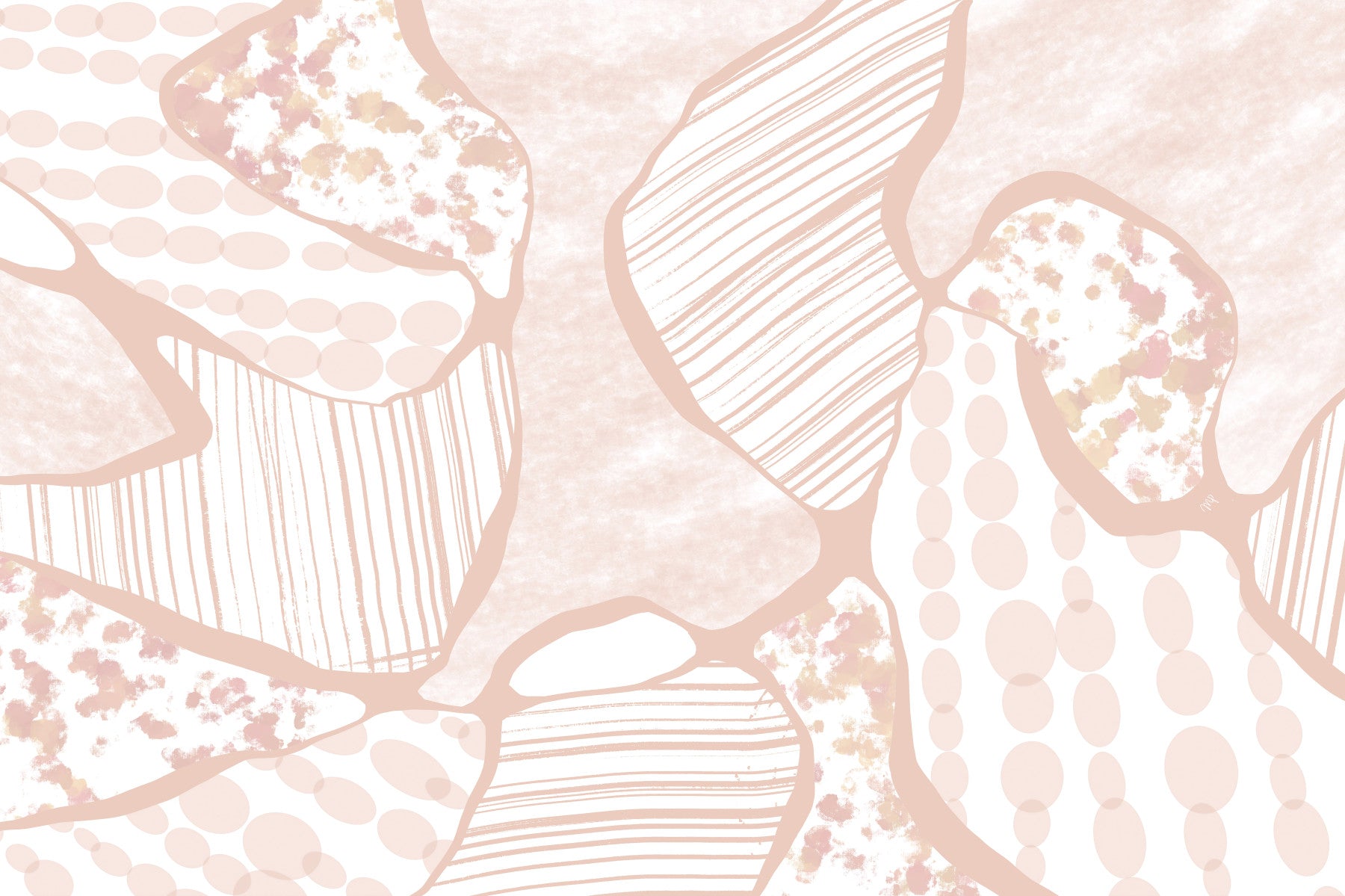 Elevate your home with this unique abstract design, an ideal wallpaper for walls. Notice the gentle sketch style with light pinks and subtle peach tones. Featuring organic shapes, lined patterns, and diffused textures, this design creates a soothing visual texture. It brightens nurseries, adds character to bathrooms, and gives a modern touch to home offices. The simple pattern is versatile, easily pairing with various decor styles.