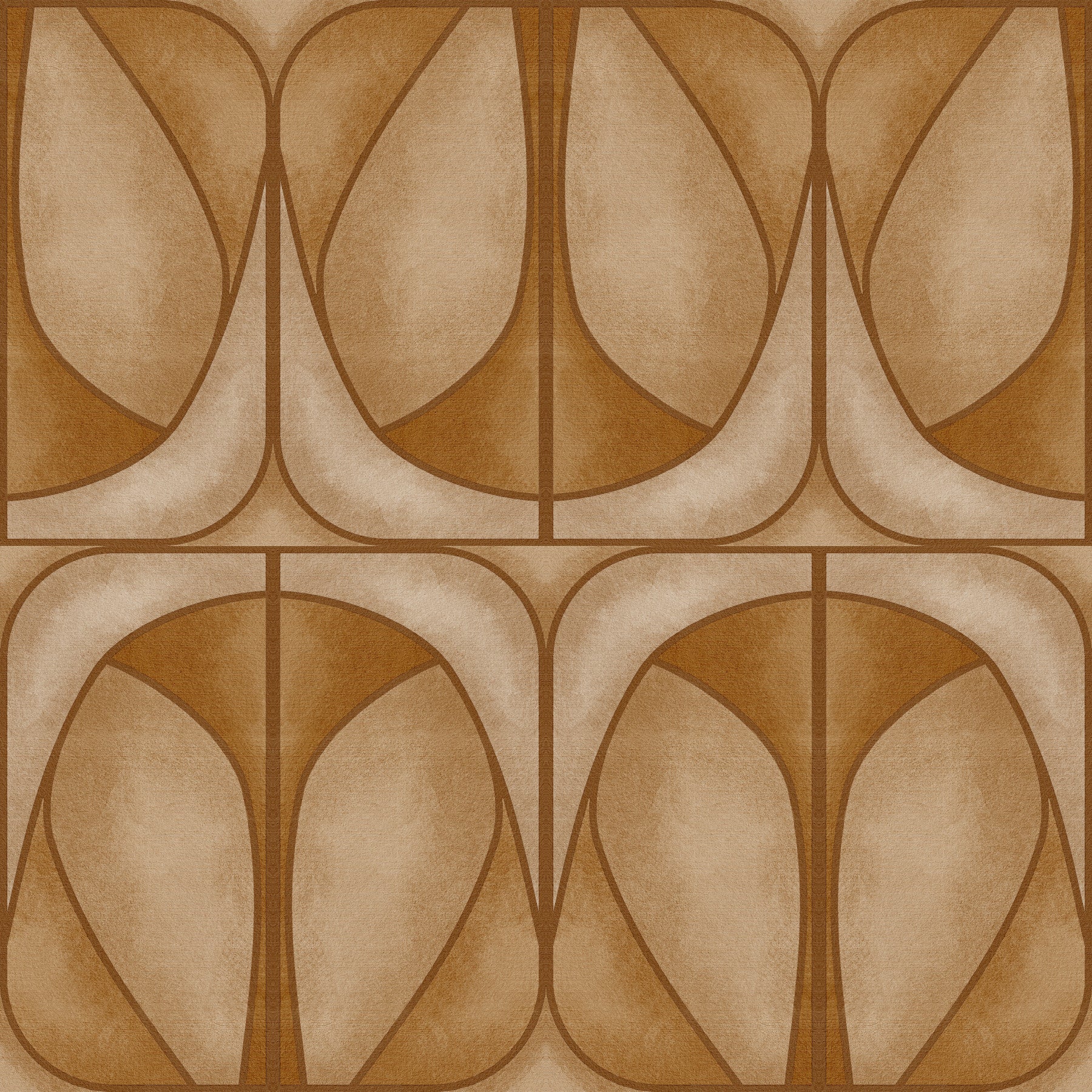 Indulge in the understated elegance of "Softy Dèco Geometries - Warm Caramel," a wallpaper that blends the iconic shapes of Art Deco with a modern, comforting warmth. This design features subtly rounded geometric forms, reminiscent of stylised florals or abstract motifs, arranged in a harmonious repeating pattern. The rich, warm caramel colour palette creates a welcoming and sophisticated atmosphere, perfect for adding a touch of refined luxury to any space. The textures offer a tactile sense of depth, inviting you to immerse yourself in its calming embrace. "Softy Dèco Geometries - Warm Caramel" offers a soothing visual experience that balances structure and softness, making it an ideal choice for bedrooms, living rooms, or any area where a serene and stylish backdrop is desired. This wallpaper offers a blend of timeless appeal and contemporary sensibilities, elevating the style of your home.