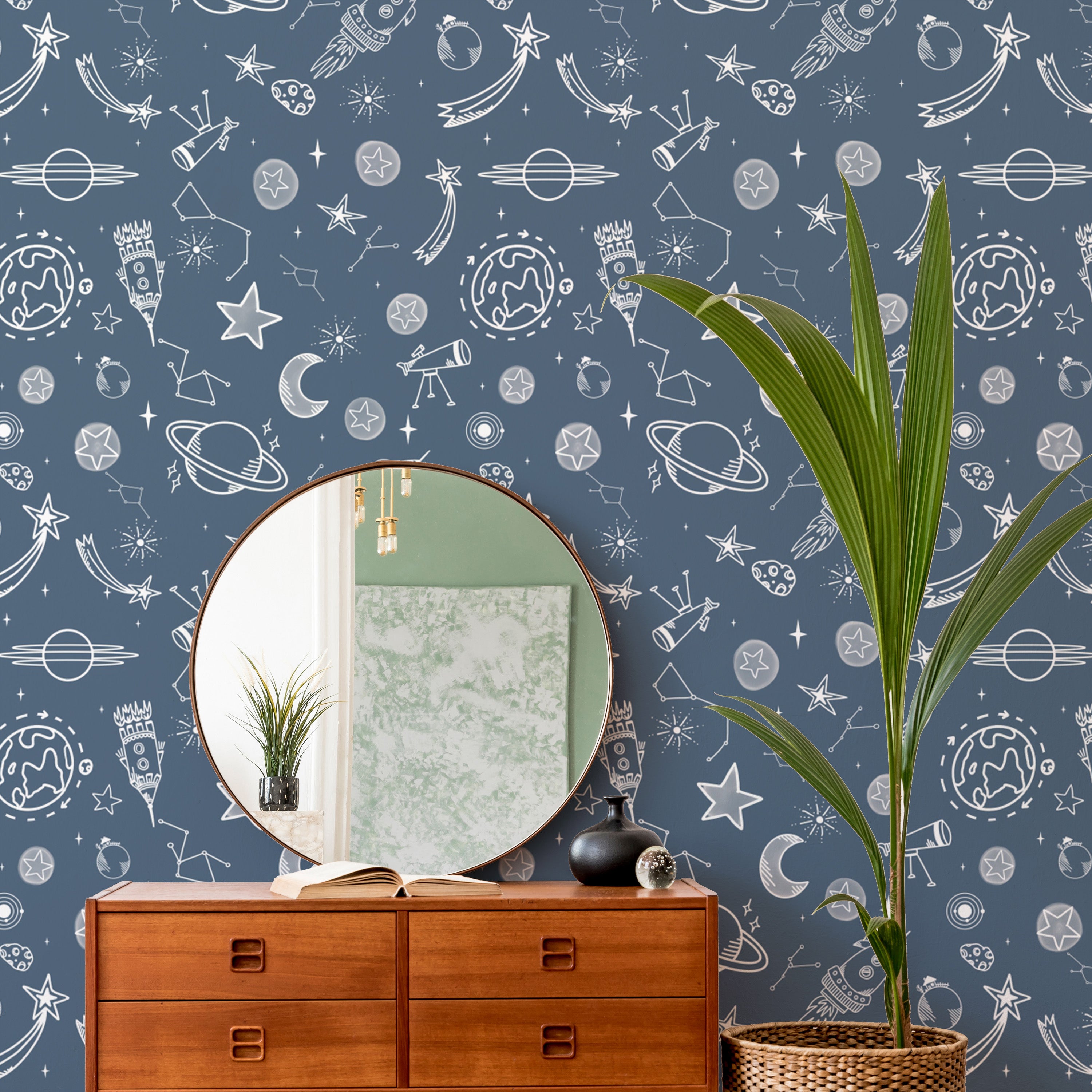 Space Voyage Blue Wallpaper for cosmic wall decor