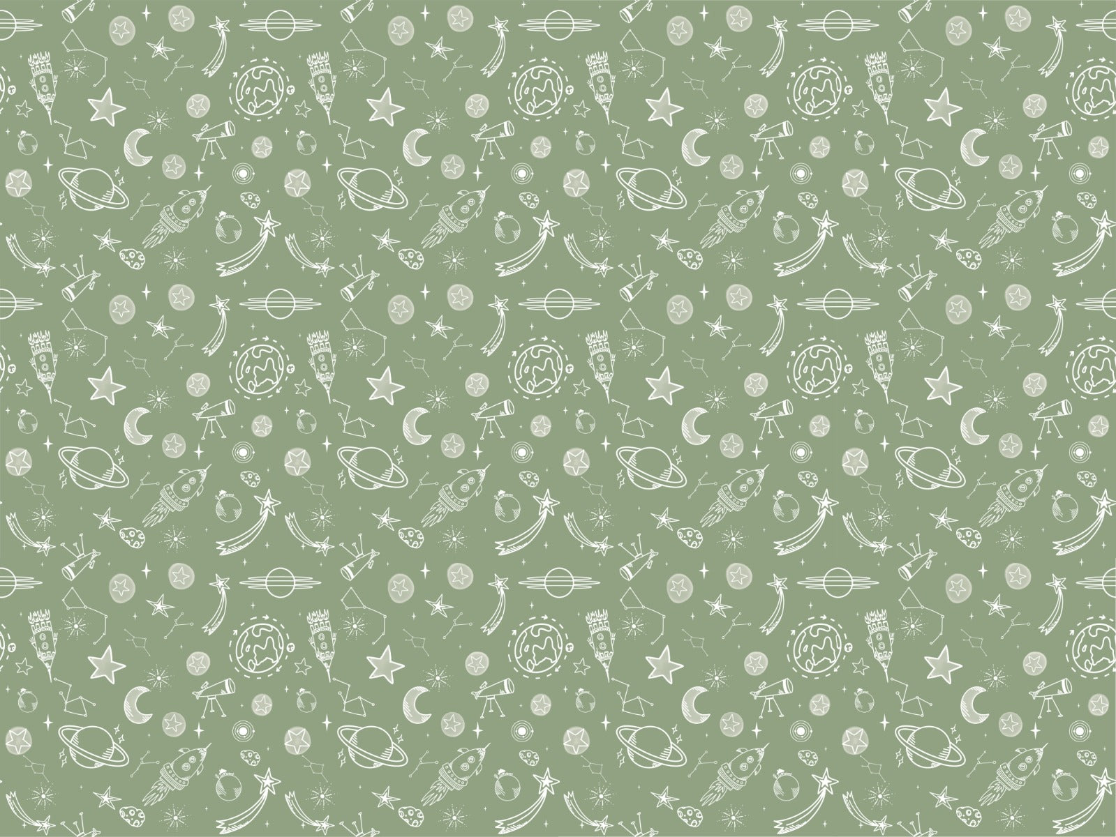 Space Voyage Green Kids Wallpaper with stars and rockets