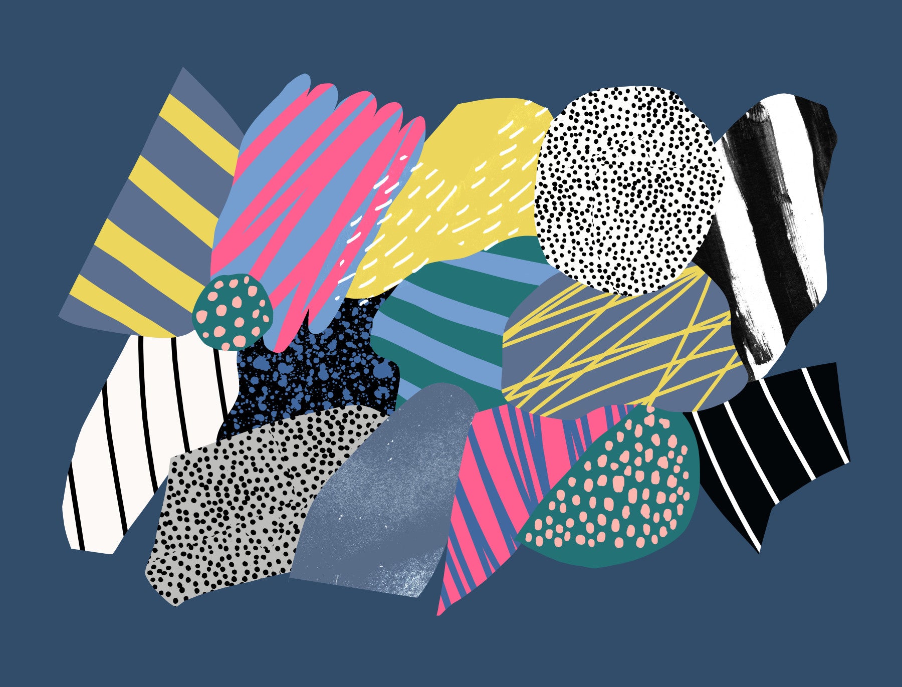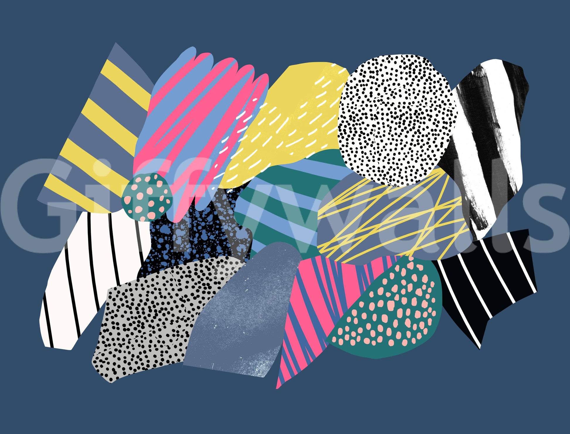 Blast off into a galaxy of bold abstraction with "Spaceship," a dynamic wallpaper that reimagines interstellar travel through a playful lens. This isn't your typical starship schematic; imagine instead, a collection of alien artifacts, architectural fragments, and cosmic debris, all brought together in a vibrant composition. Bold stripes collide with dotted textures and free-flowing brushstrokes, evoking the energy of a bustling spaceport or the otherworldly landscape of a newly discovered planet. The contrasting colours and geometric shapes offer a stimulating visual experience, sparking curiosity and igniting the imagination. Let "Spaceship" transform your screen into a portal to uncharted territories, inviting you to explore the infinite possibilities of art and space.
