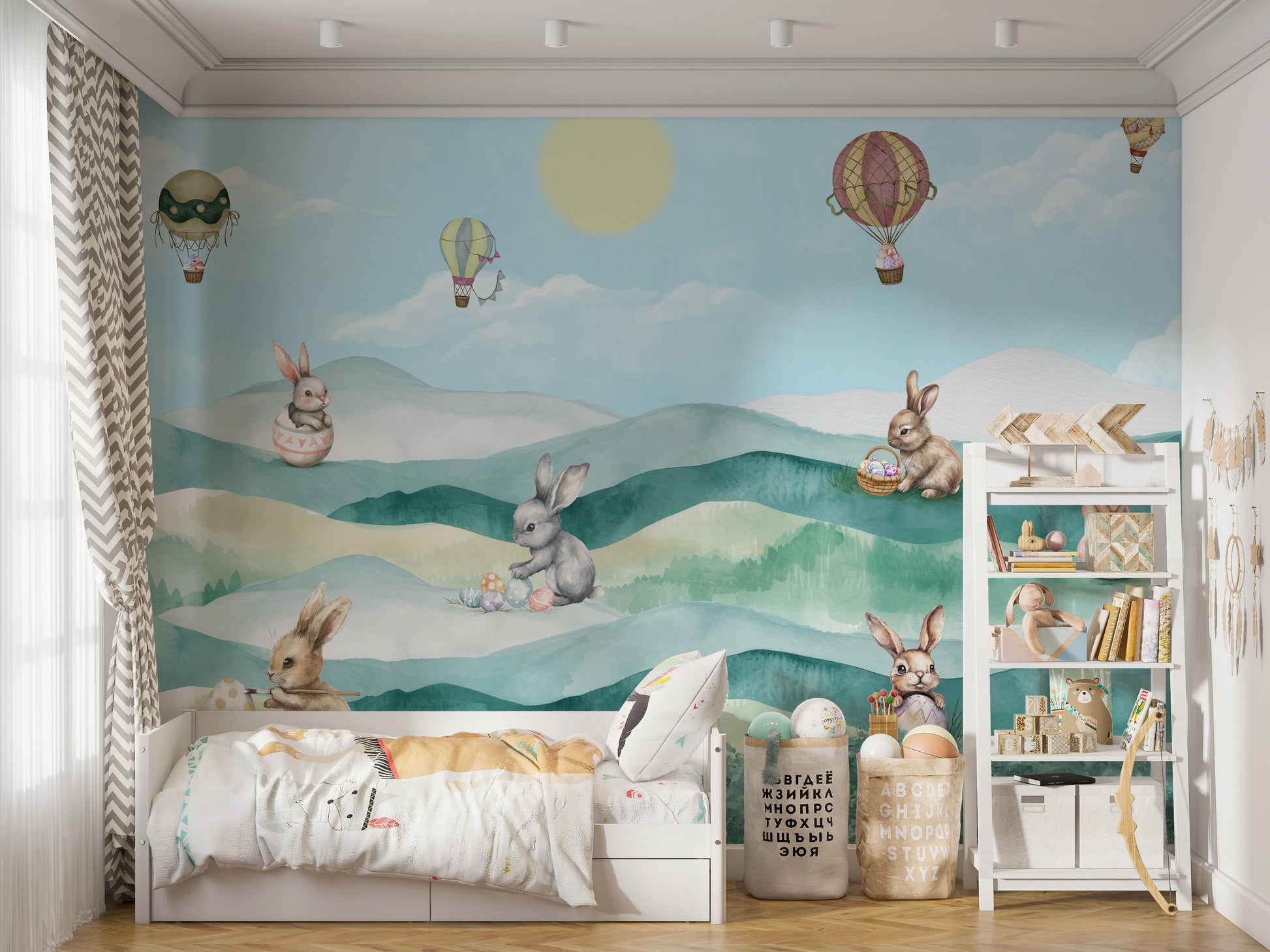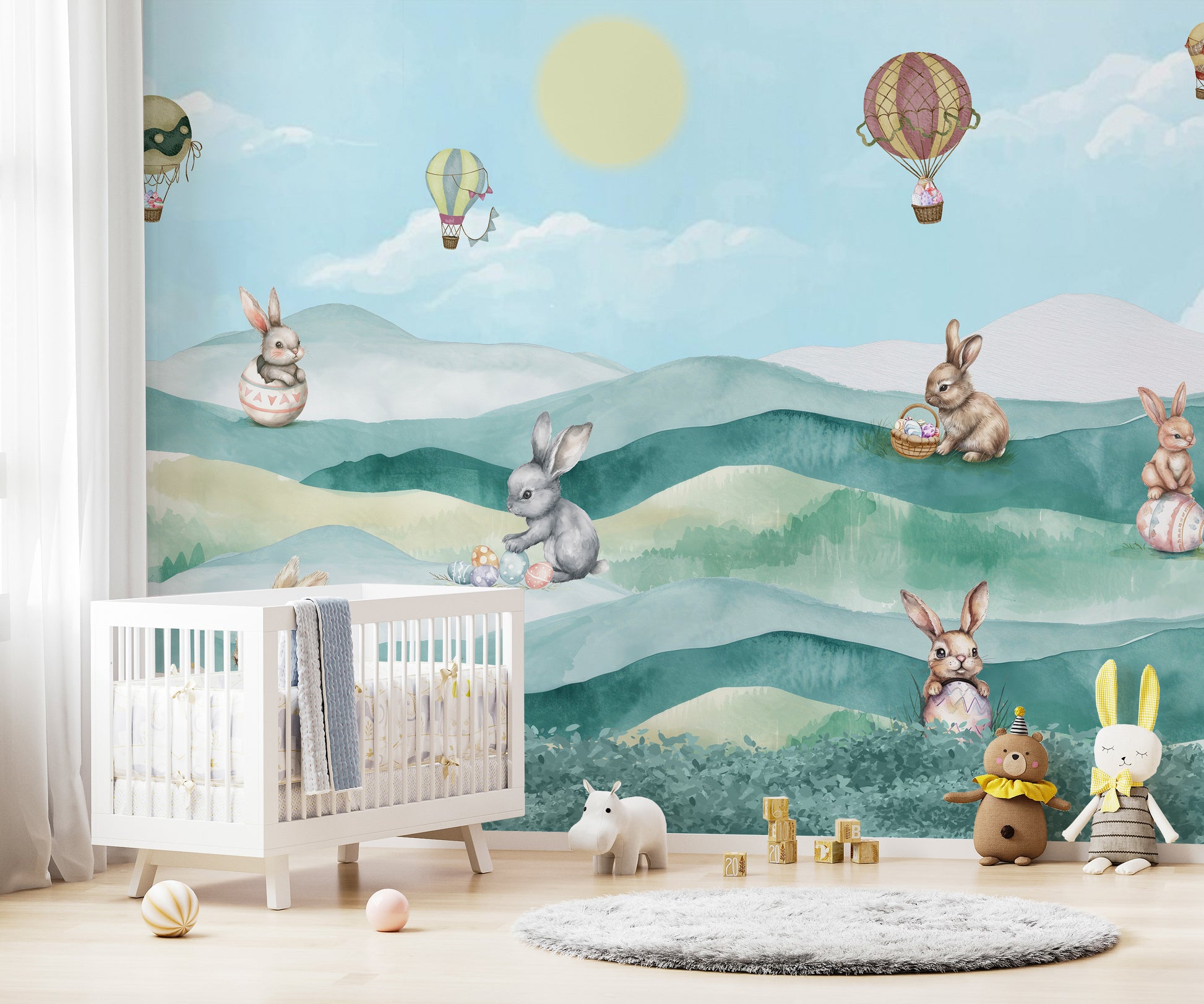Bring springtime magic to your home with our Spring Bunny Easter Egg Wallpaper. This cute Easter wallpaper features playful bunnies, pastel eggs, and soft scenic hills perfect for Easter-themed wallpaper in nurseries, kitchens, or kids’ rooms. As a spring-themed peel and stick wallpaper, it’s an Easter wallpaper that’s safe for renters and ideal for easy Easter wall decor for small spaces. Whether you're decorating for a celebration or simply love pastel Easter wallpaper, this design adds charm and color to any room. From Easter mural wallpaper to bunny wallpaper dreams, it’s the removable Easter wallpaper your walls will adore.