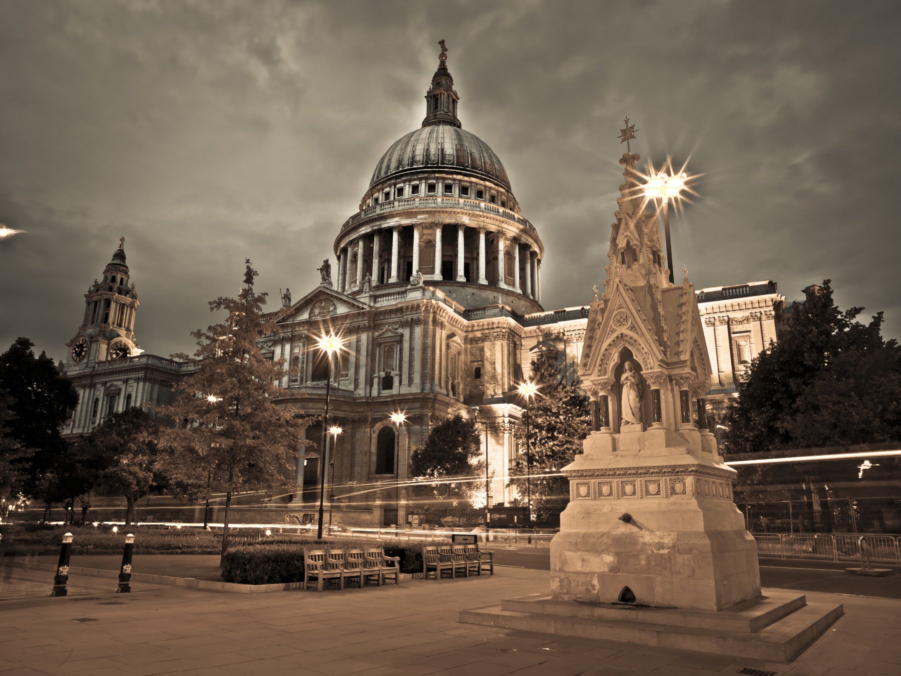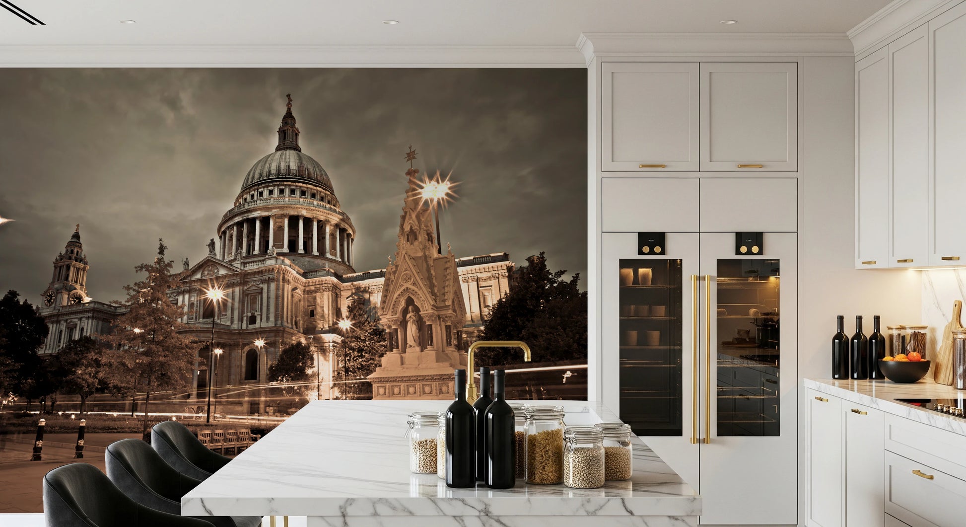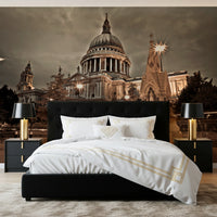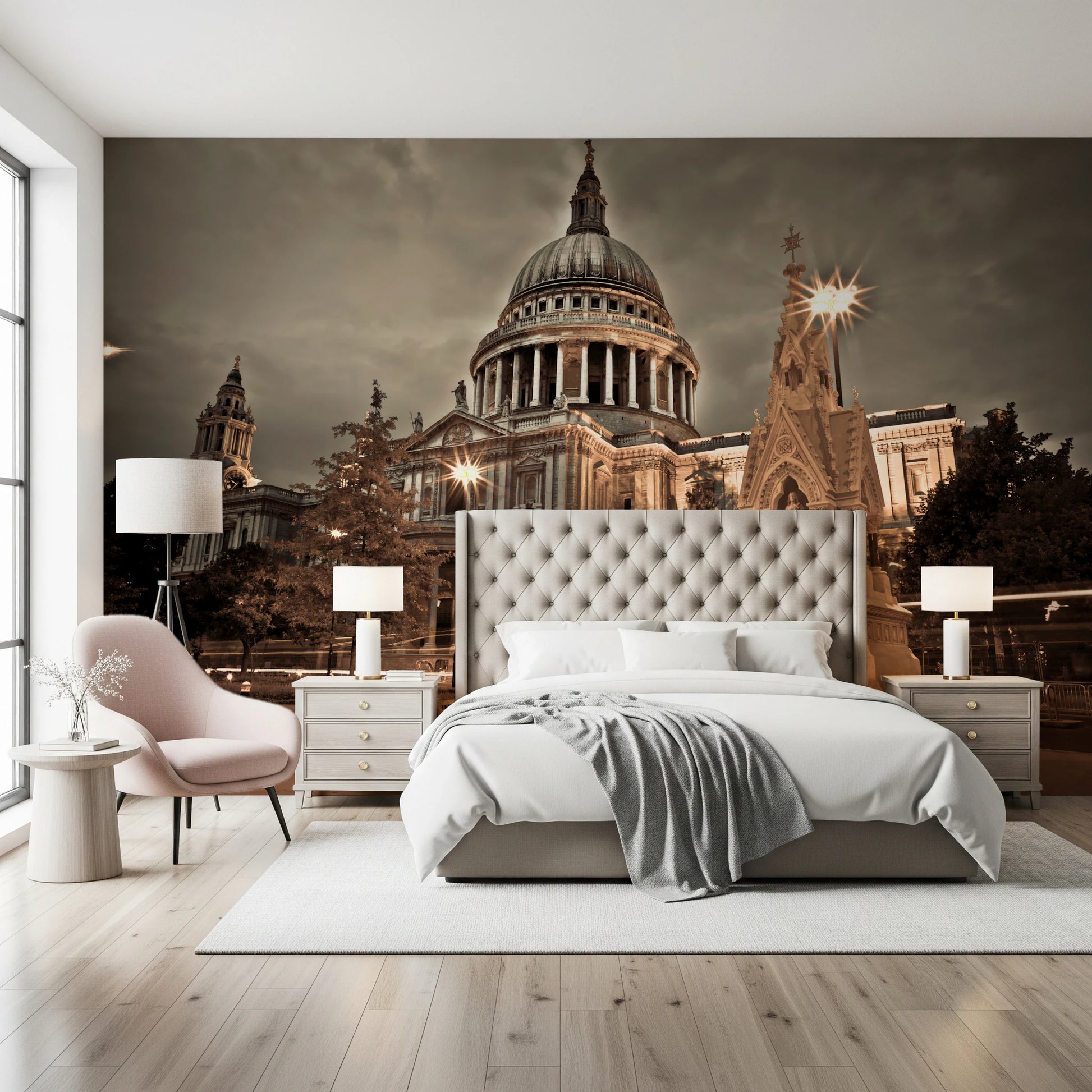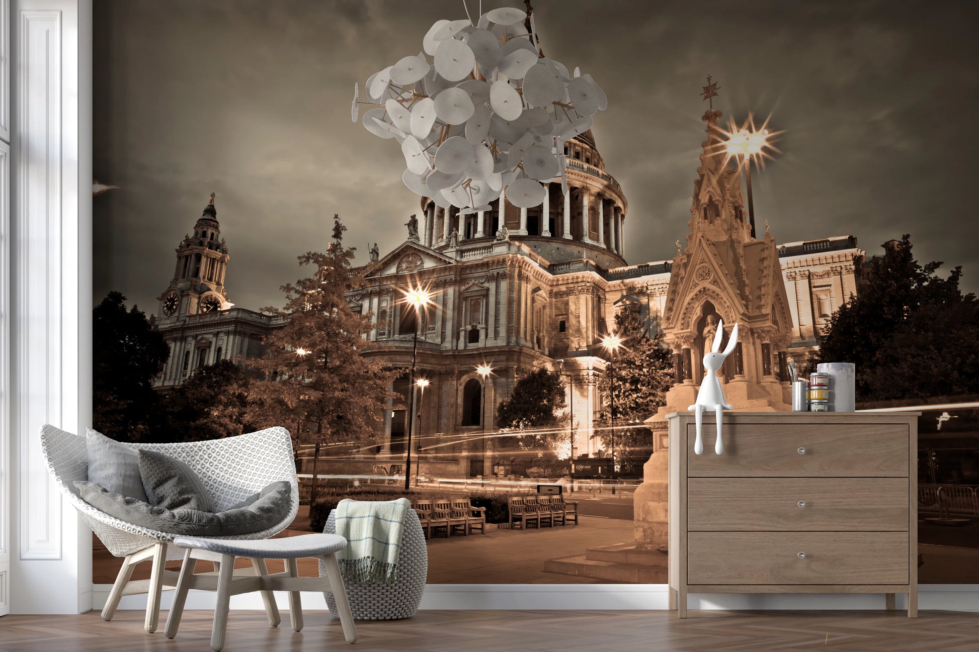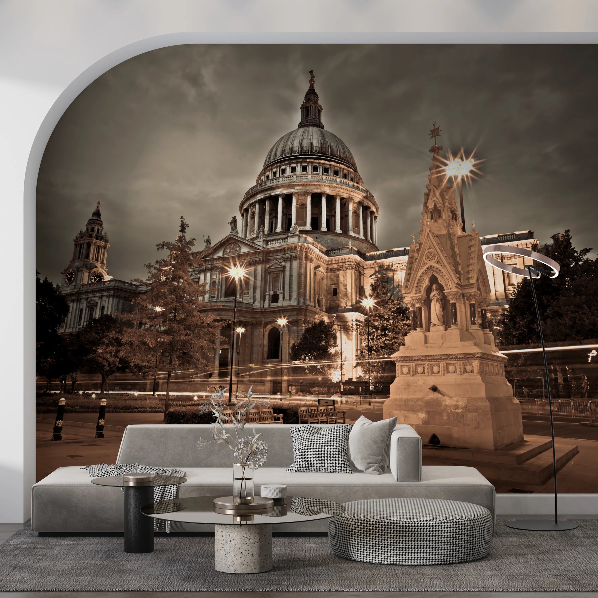 Transport your living space to the heart of London with "St Pauls Sepia," a sophisticated portrayal of the iconic cathedral. Bathed in a warm sepia tone, this piece captures the timeless grandeur of St. Paul's against a dramatic, cloud-filled sky. Streaks of light trace the movement of city life, adding a dynamic energy to the classical architecture. The prominent monument in the foreground adds depth and intrigue, inviting the eye to explore the intricate details of this historic scene. This unique composition creates a captivating atmosphere that is both elegant and evocative, perfect for adding a touch of historic charm and worldly sophistication to any room.