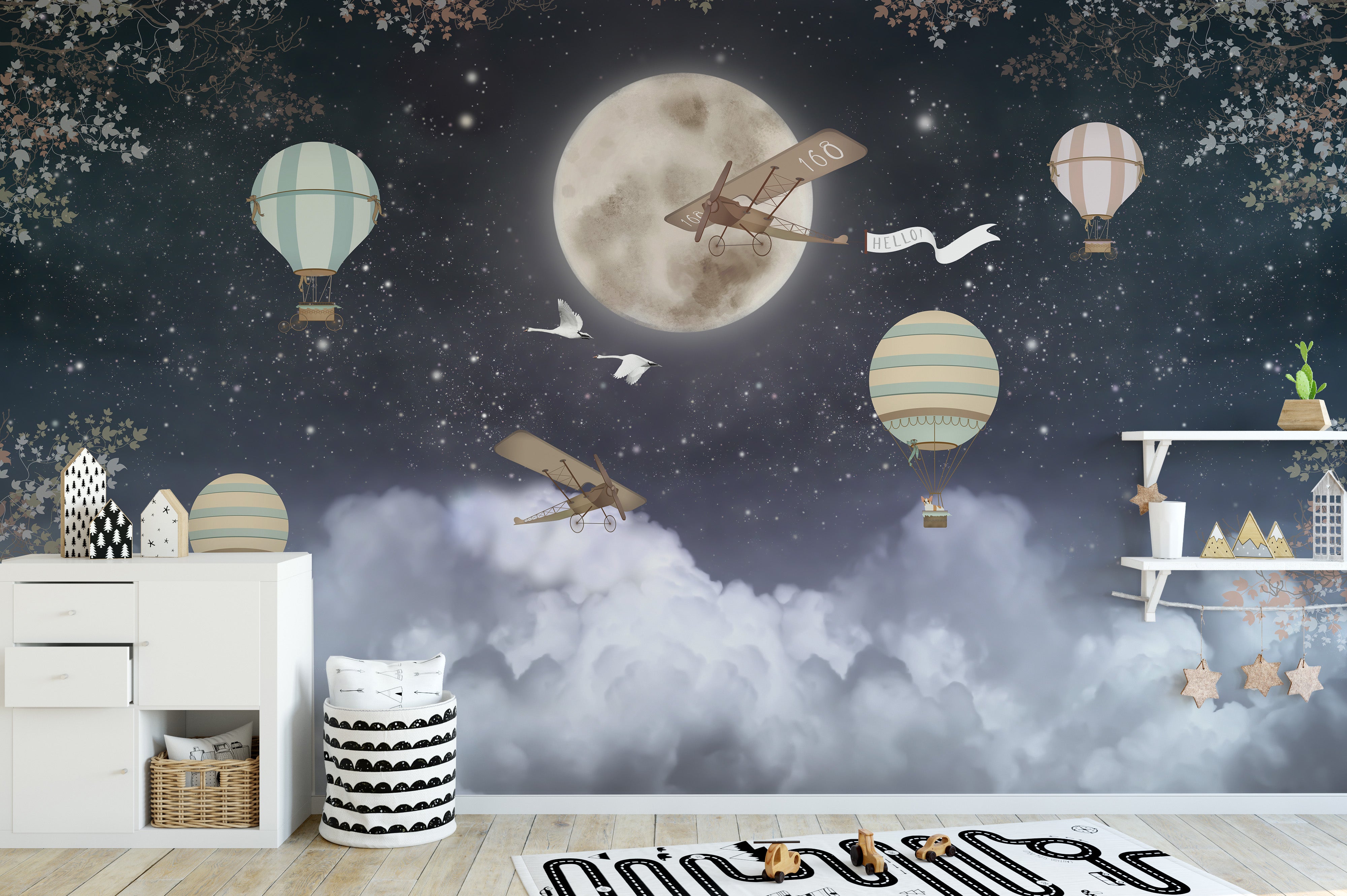 Imagine looking up at the night sky surrounded by many stars and clouds. That's the feeling that a dreamy night, clouds, and stars mural wallpaper can bring into a kid's room. With this type of wallpaper, your child can feel like sleeping under the stars every night. It creates a stunning and unique atmosphere that can transport them to a world of imagination and wonder. It's the perfect way to add a touch of magic to any kid's bedroom. The dreamy night clouds and stars mural wallpaper is more than just wallpaper; it's the gateway to a world of adventure and dreams.