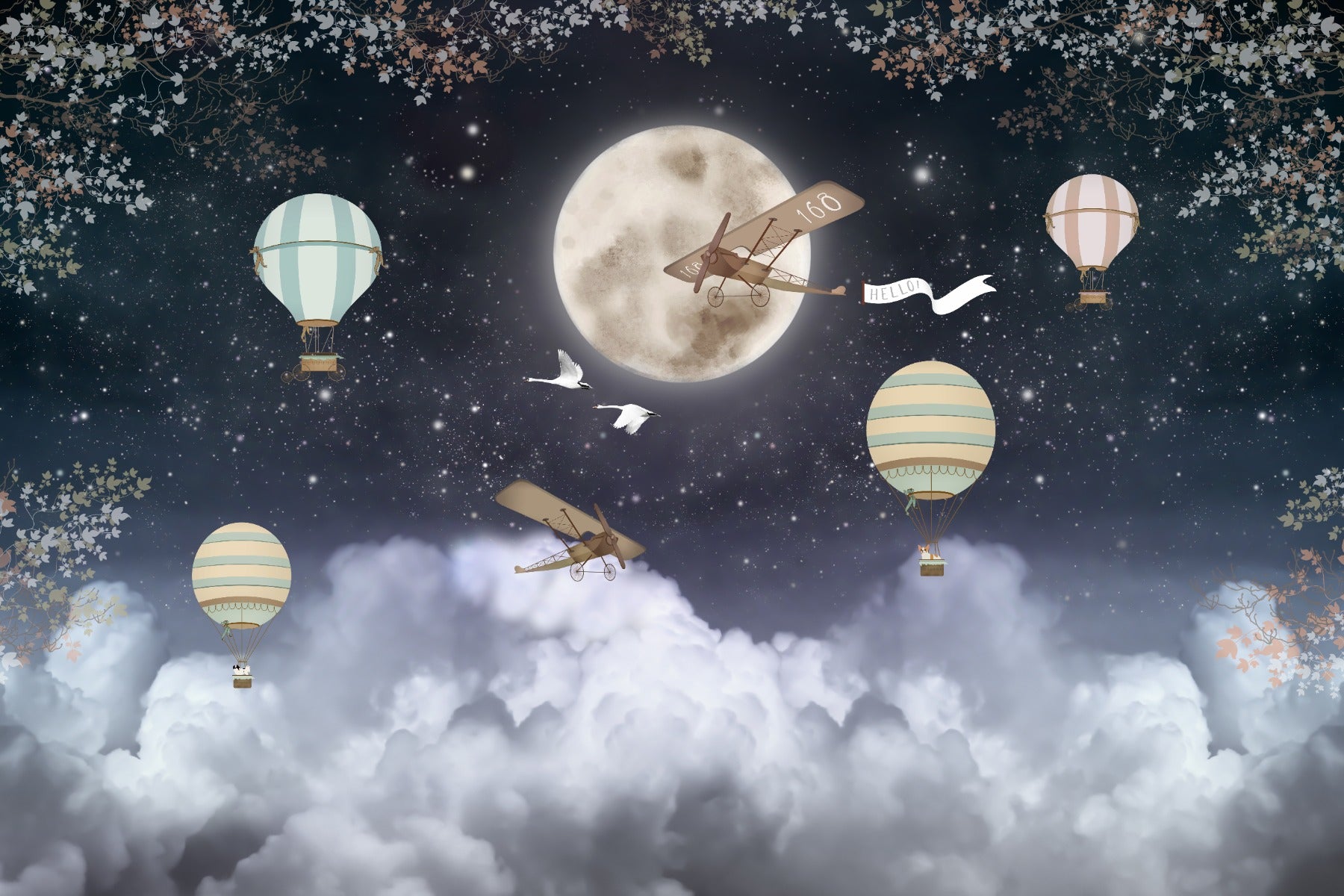 Shinny Stars Night Hot Air Balloons Wallpaper Murals - Giffywalls