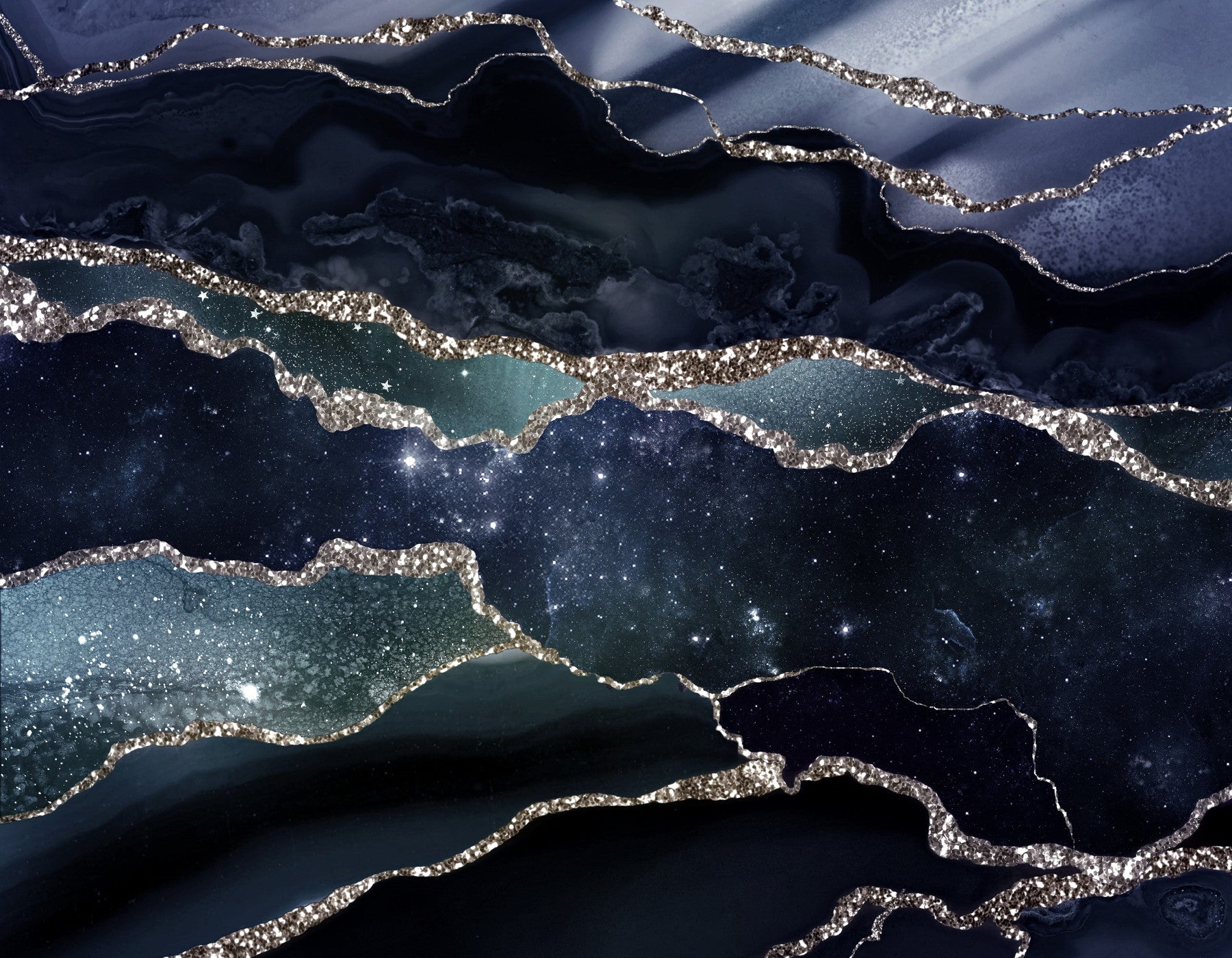 Invite the cosmos into your home with this elegant design. This wallpaper for walls features a blend of deep blues, greys, and greens, reminiscent of natural stone formations. Veins of stardust weave through the pattern, adding a touch of celestial wonder. Perfect for bedrooms, living rooms, or hallways, this design adds depth and visual interest. Its calming colors complement minimalist and modern interiors.