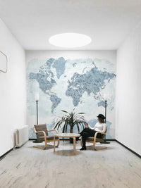 Bring timeless elegance and modern calm to your walls with the Steel Blue Watercolor World Map Wallpaper. Featuring soft shades of blue-gray in a delicate watercolor texture, this mural offers a refined and sophisticated take on world map decor. Each country and city is clearly labeled, blending functionality with artistic beauty. Perfect for offices, living rooms, bedrooms, or study areas, its cool tones pair effortlessly with minimalist, industrial, or Scandinavian interiors. Available in both peel-and-stick and traditional wallpaper options, it’s easy to install and made with eco-friendly materials. Discover the world in a tranquil and stylish palette of steel blue.