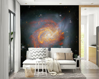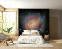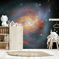 Elevate your interior design with this inspiring galaxy wallpaper for walls. It depicts a majestic spiral galaxy awash in orange, blue, and sparkling stars. This artwork infuses wonder into any room, creating a unique backdrop that suits modern or contemporary spaces. Use it in bedrooms, living rooms, or studies to inspire and add depth. The expansive design makes smaller spaces appear larger, adding a touch of cosmic sophistication to your interior style. Embrace the beauty of the universe and transform your walls into a celestial masterpiece.