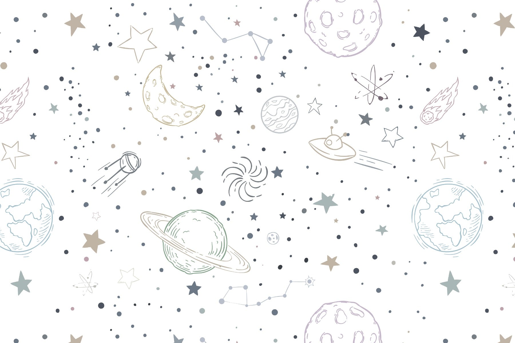 The stellar sketches nursery wallpaper is a delightful addition to any child's room, where imaginations can soar to new heights among the stars. This playful wallpaper is a backdrop to countless adventures in outer space, with doodles of planets, stars, and comets that invite young minds to explore the universe. Designed with a gentle palette that complements the joy and wonder of a playroom, this space wallpaper is more than a simple decoration; it's a launchpad for dreams and discovery. Each illustrated element is a conversation starter about the vast and mysterious cosmos, making it an educational and decorative choice. This nursery wallpaper promises to make any nursery or playroom a place where little astronauts can chart their intergalactic missions in their home.