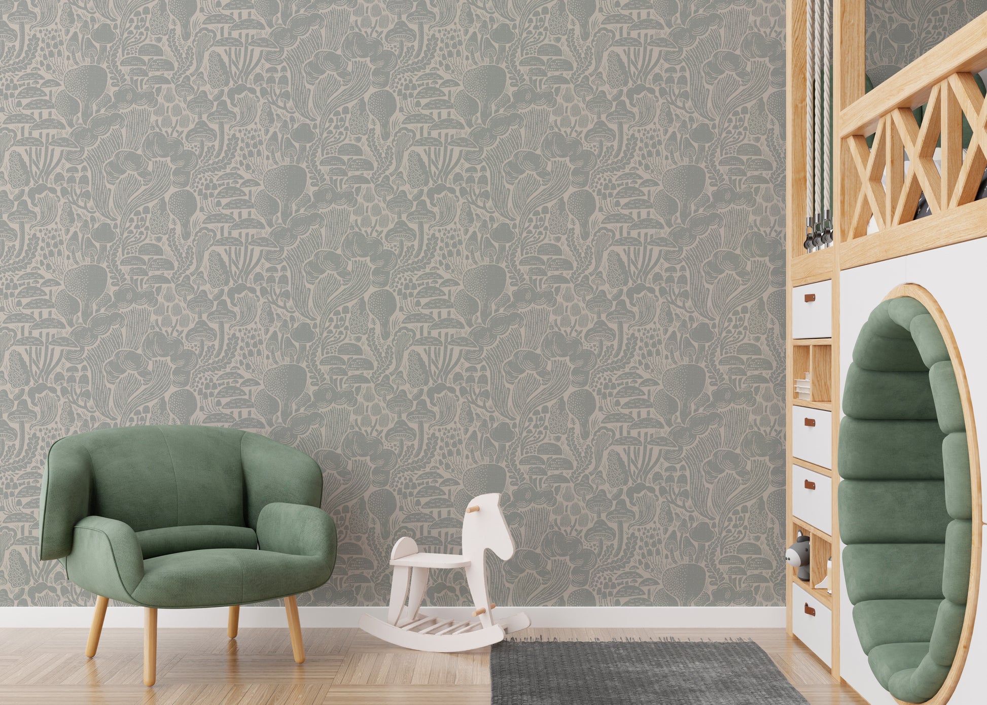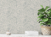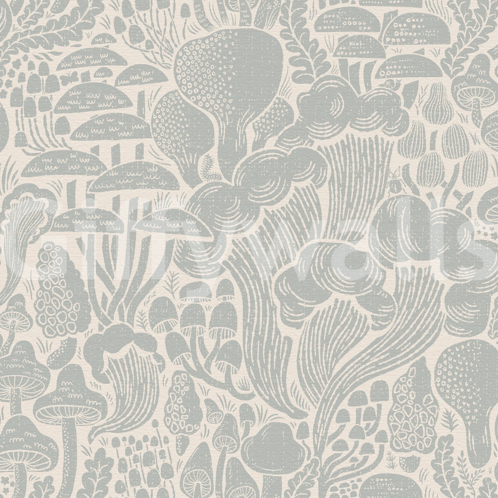 Immerse yourself in the enchanting 'Sten Fungi Forest Silhouettes' wallpaper. This design features a captivating array of stylized mushroom silhouettes, rendered in soft, muted grey tones against a creamy off-white background. The textured, linocut-inspired aesthetic evokes a sense of rustic charm and whimsical tranquility. Various mushroom species, from delicate toadstools to larger, imposing fungi, are intricately detailed, creating a dense, yet harmonious forest scene. The overall effect is a serene and captivating wallpaper, perfect for adding a touch of nature-inspired artistry to any digital device.