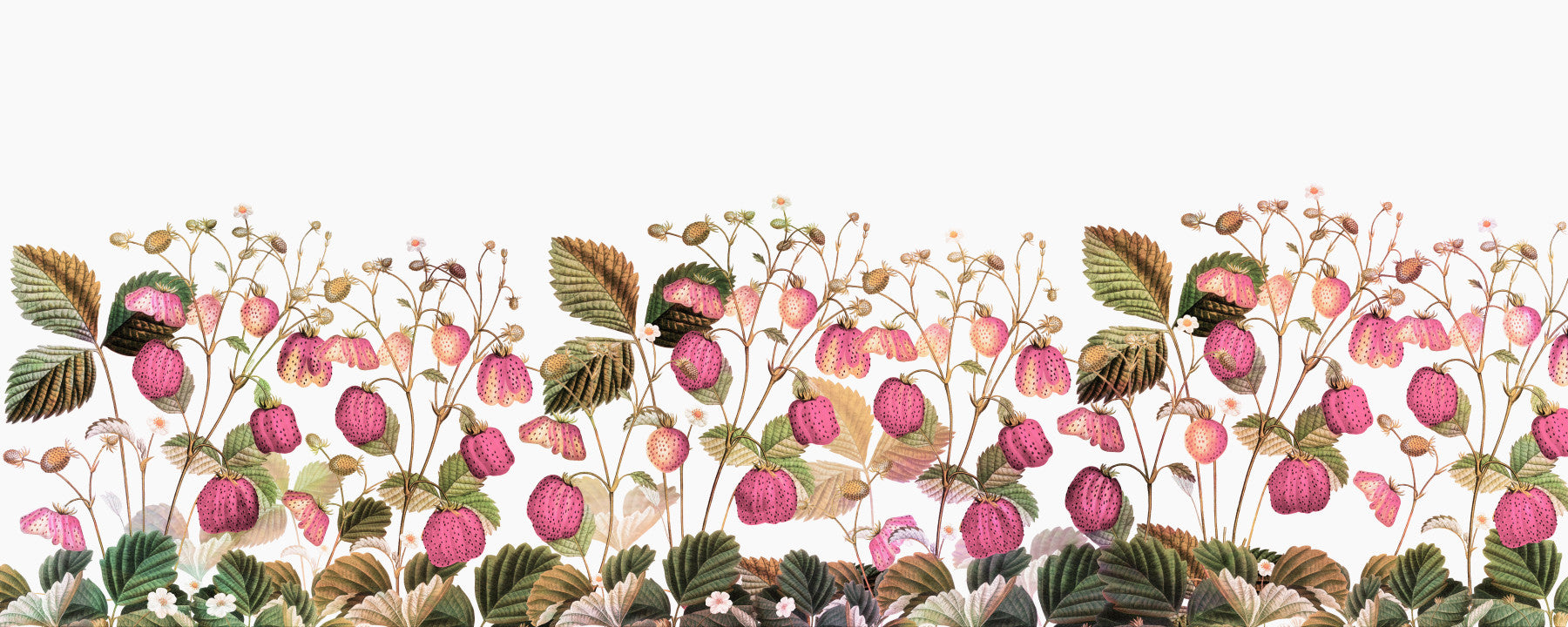 Experience the timeless allure of 'Strawberry Fields Forever' with this captivating wallpaper. The design showcases a mesmerizing border of intricately detailed pink wild strawberries against a crisp white backdrop. The wallpaper's vintage botanical style captures the essence of natural beauty, combining rich pinks, soft greens, and subtle browns for a visually appealing and harmonious palette. This wallpaper is perfect for adding a touch of classic elegance and whimsy to any space, creating a soothing and inviting atmosphere. Its timeless aesthetic makes it a versatile choice for various interior styles and rooms.
