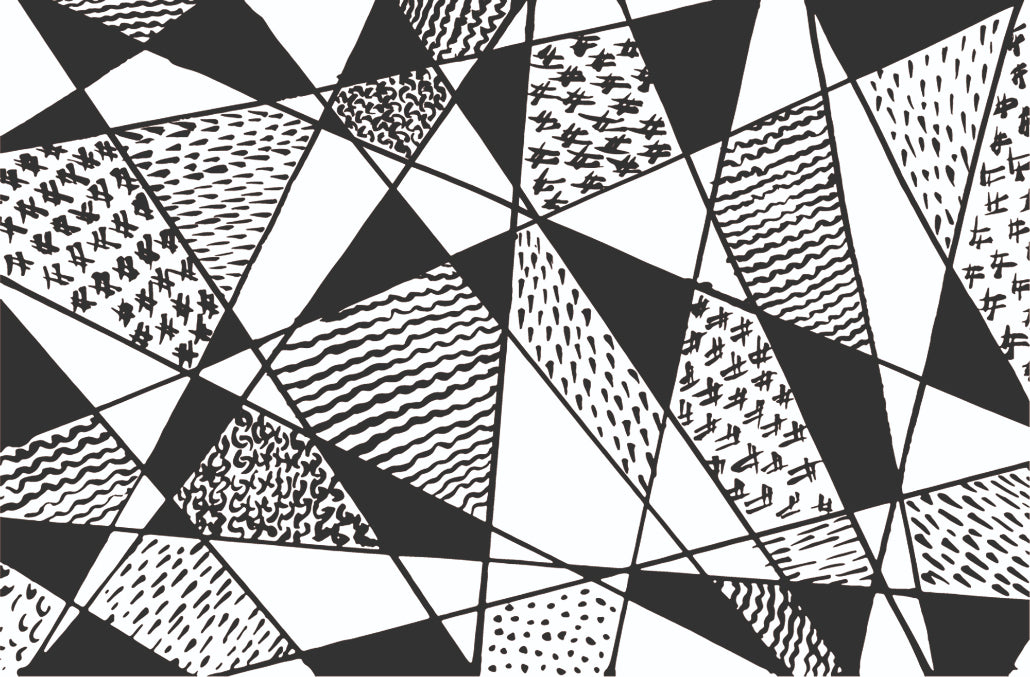 Elevate your bedroom's aesthetic with the black and white stroke line geometric mural wallpaper. This striking design features a mosaic of triangles filled with diverse patterns, from delicate dots to bold strokes and intricate scribbles. Each shape interlocks seamlessly to create a dynamic and modern look, perfect for making a statement wall. The classic black and white colour scheme offers a versatile backdrop that complements any colour palette, ensuring this wallpaper integrates smoothly with your existing bedroom decor. Whether you want to add a touch of sophistication or create a focal point in your room, this black and white wallpaper is a stylish choice for those who appreciate contemporary design.