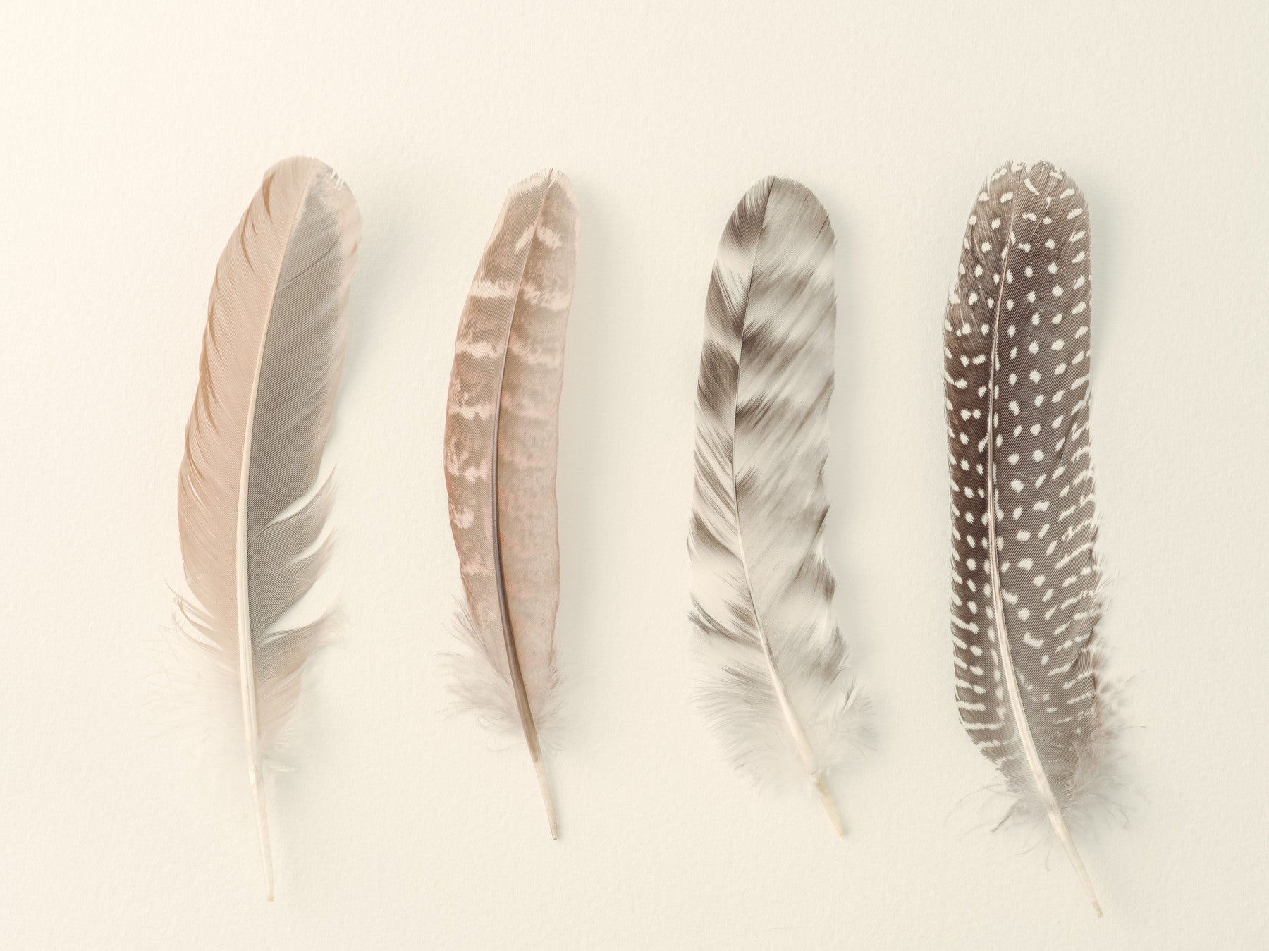 Adorn your home with the intricate beauty of our Study of Feathers Wall Mural. This captivating mural wallpaper features a detailed and elegant arrangement of various feathers, showcasing their delicate textures, unique patterns, and subtle variations in natural hues. The design brings a sense of serene tranquility and refined natural artistry to any space, with a palette of soft browns, grays, creams, and whites. It's an ideal wallpaper for walls to introduce unique character and a profound feeling of peaceful calm and understated sophistication to any room. Its close-up perspective and inviting details offer a pleasing backdrop, ensuring your home feels both soothing and beautifully connected to the delicate artistry of nature. This wall mural is a wonderful choice for a harmonious and inspiring home.
