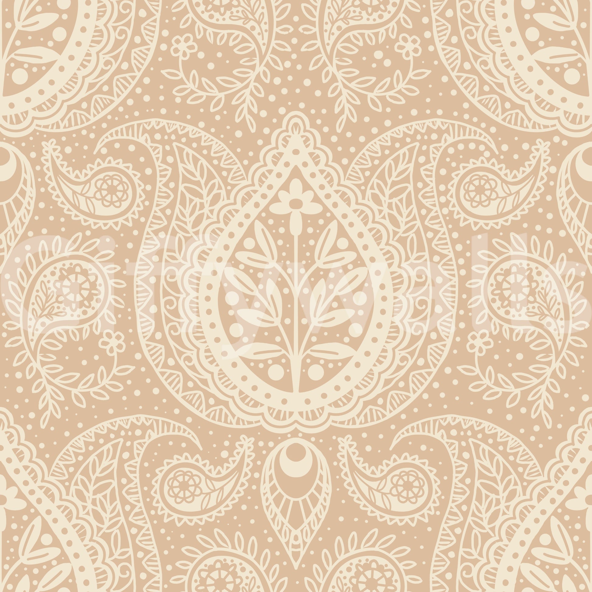 Indulge in the serene elegance of "Subtle Botanical Paisley," a wallpaper design that seamlessly blends the classic paisley pattern with delicate botanical motifs. Creamy off-white paisley shapes dance gracefully against a warm, muted beige backdrop. The intricate details, featuring stylized leaves and flowers, create a sophisticated and understated aesthetic. This wallpaper offers a calming and refined ambiance, perfect for adding a touch of understated luxury to any space. Its gentle color palette and subtle patterns make it effortlessly adaptable to various design styles, from minimalist to bohemian.