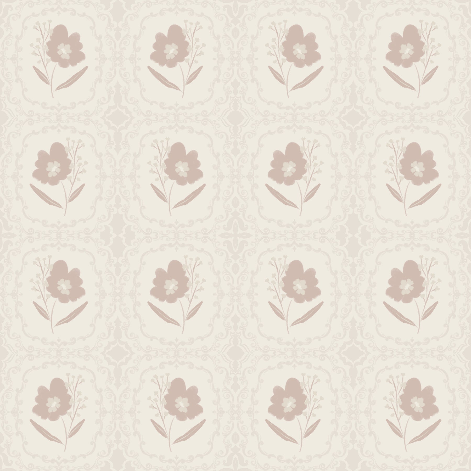 Soft vintage-style flowers spaced evenly across a warm neutral wallpaper background.