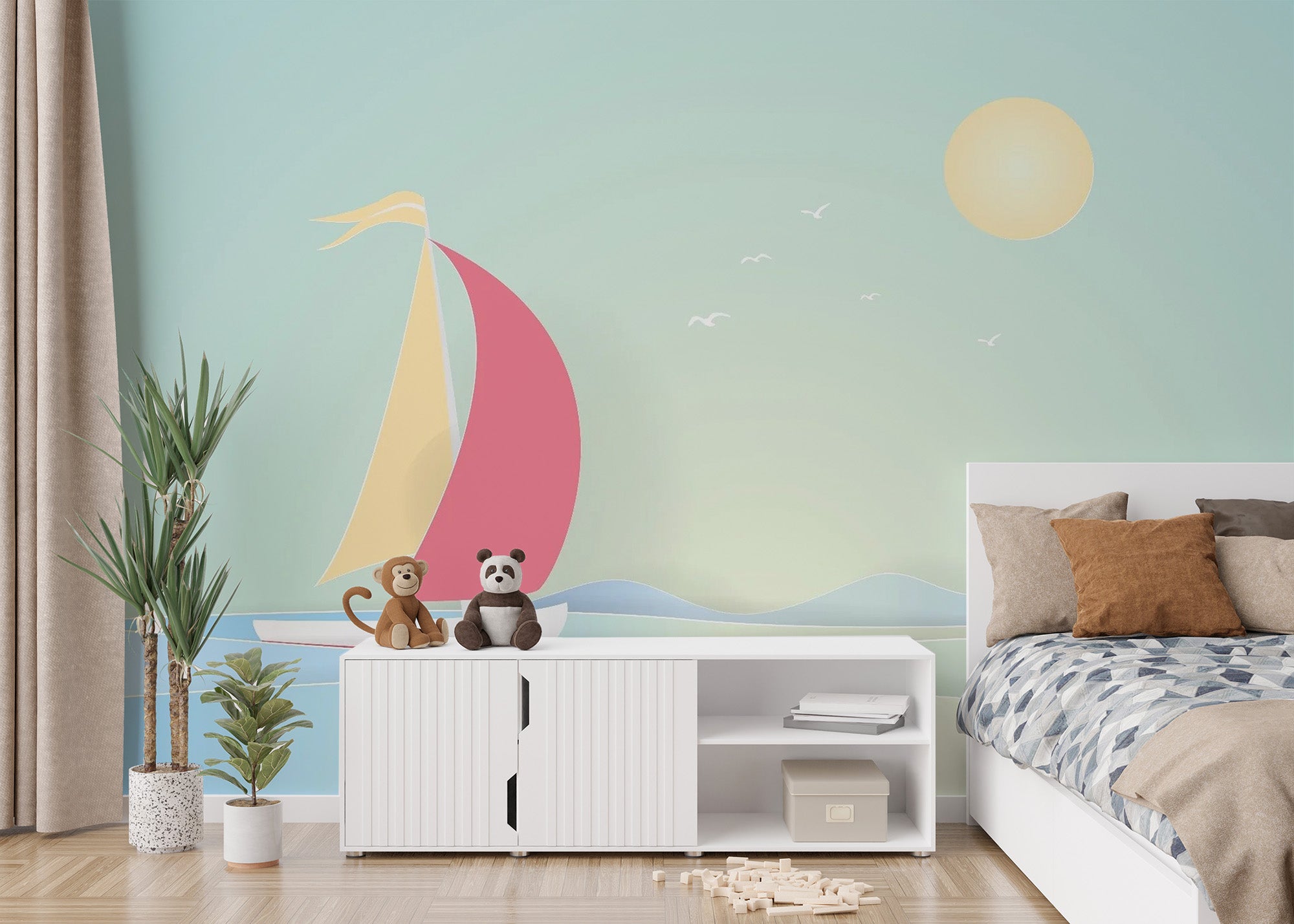 Vibrant Summer Boat Sailing Wall Mural Design