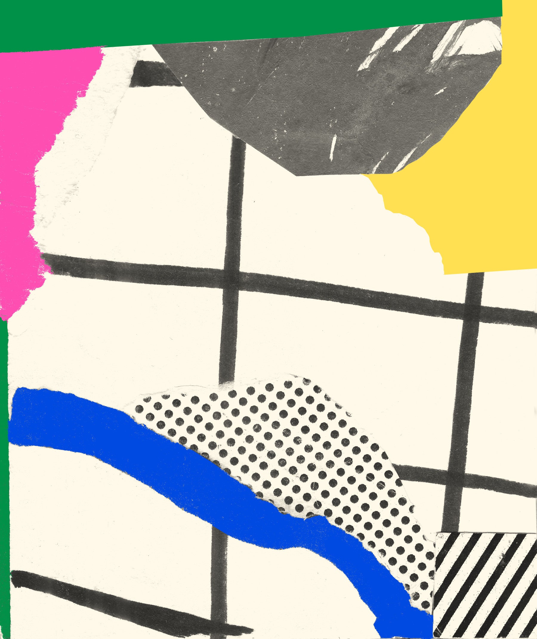 Dive into the vibrant essence of summer with this captivating collage. This wallpaper features an abstract composition reminiscent of sun-drenched days and carefree adventures. Bold swathes of color—electric pink, sunshine yellow, verdant green, and cerulean blue—contrast against a textured, off-white backdrop, evoking the feeling of torn paper artfully arranged. A black grid pattern hints at structured moments amidst the summer's freedom, while geometric shapes and playful dots inject a sense of retro fun. The overall effect is energetic and visually stimulating, perfect for adding a touch of summer vibrancy to any digital space. Let this striking 'Summer Collage' wallpaper transform your screen into a perpetual celebration of warm weather and artistic expression.